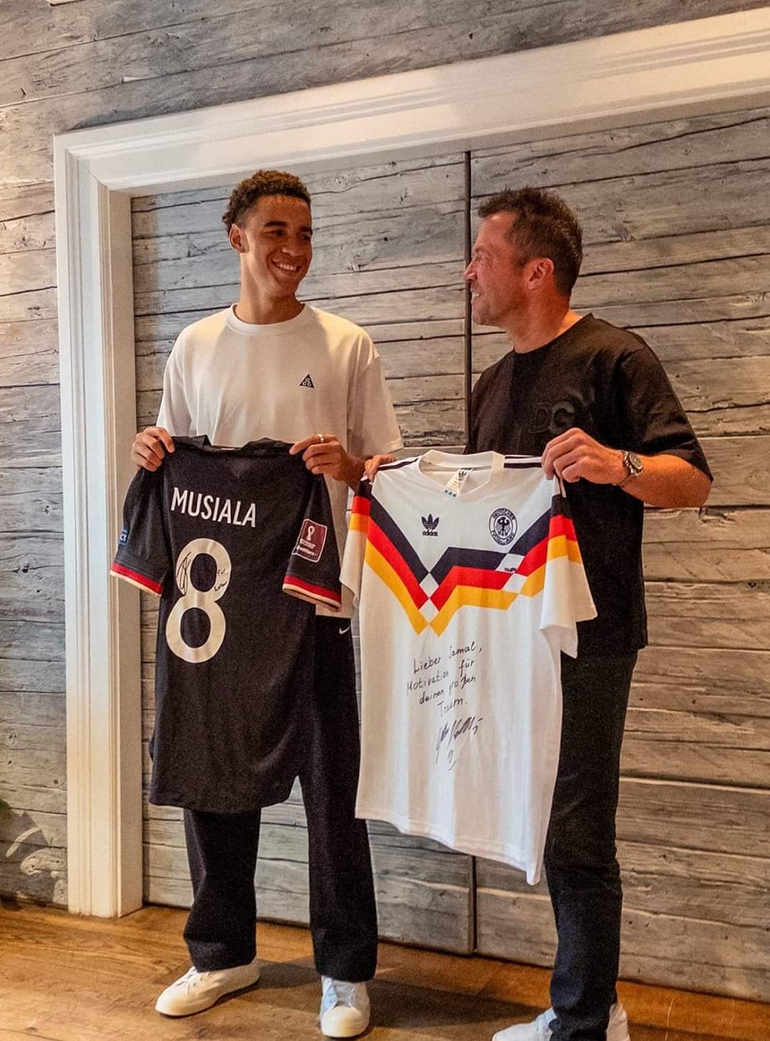 وكانت لفتة من لوثار ماتيوس القائد التاريخي للمانشافت الذي زار المعسكر الذي أقامه المنتخب وقام بتسليم موسيالا قميص المنتخب الفائز بكأس العالم، الذي بادله هو الآخر بقميصه القديم مع المنتخب الذي يحمل رقم 8.