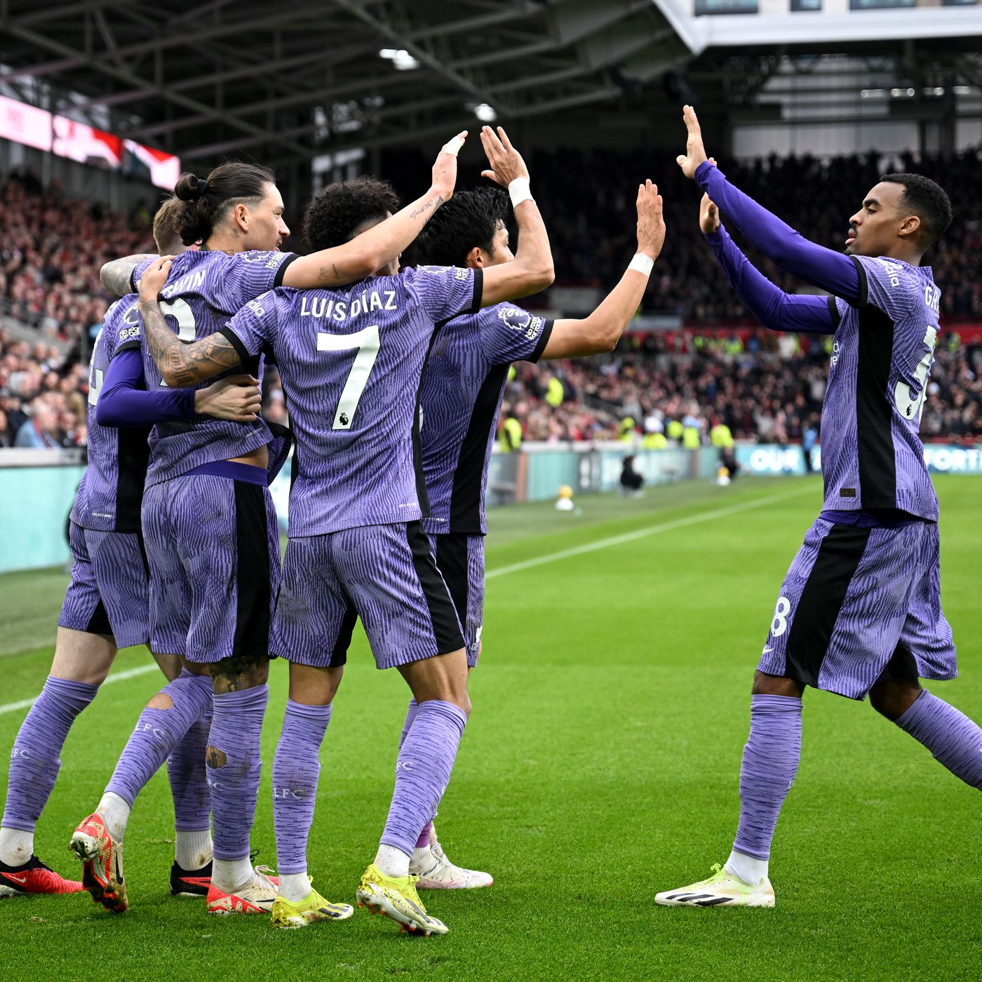وتكون خط الهجوم من البرتغالي ديوغو جوتا، والكولومبي لويز دياز، والأوروغواياني داروين نونيز، قبل أن يدخل المصري محمد صلاح بديلا.