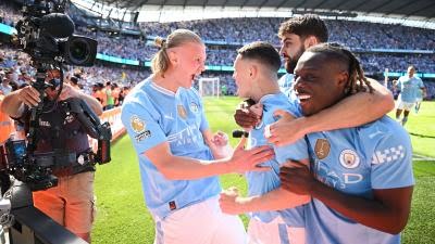 نجح فريق مانشستر سيتي بقيادة المدرب الإسباني بيب غوارديولا، تحقيق لقب الدوري الإنكليزي الممتاز لكرة القدم للمرة الرابعة على التوالي، بعد الفوز على ضيفه ويستهام بثلاثة أهداف مقابل هدف وحيد، في اللقاء الذي أقيم على ملعب الاتحاد، ليحسم الأمور بغض النظر إلى نتيجة أرسنال وإيفرتون.