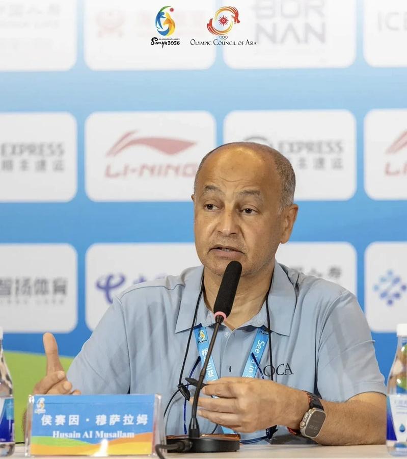 وفي مؤتمر صحافي عقده المدير العام للمجلس الأولمبي الآسيوي الكابتن حسين المسلّم في المركز الإعلامي للدورة ثمّن مشاركة جميع اللجان الأولمبية الآسيوية ال 45 في منافسات الدورة الآسيوية الشاطئية السادسة في سانيا ورأى أنها تجسيد لوحدة آسيا وتضامنها رغم التحديات التي تواجهها بفعل الصراع في منطقة الشرق الأوسط ولكنها وجدت حلولاً للمشاركة في الدورة وأظهرت للعالم أن آسيا هي الأفضل وأن من واجبنا حماية الشباب والرياضة في القارة الآسيوية .