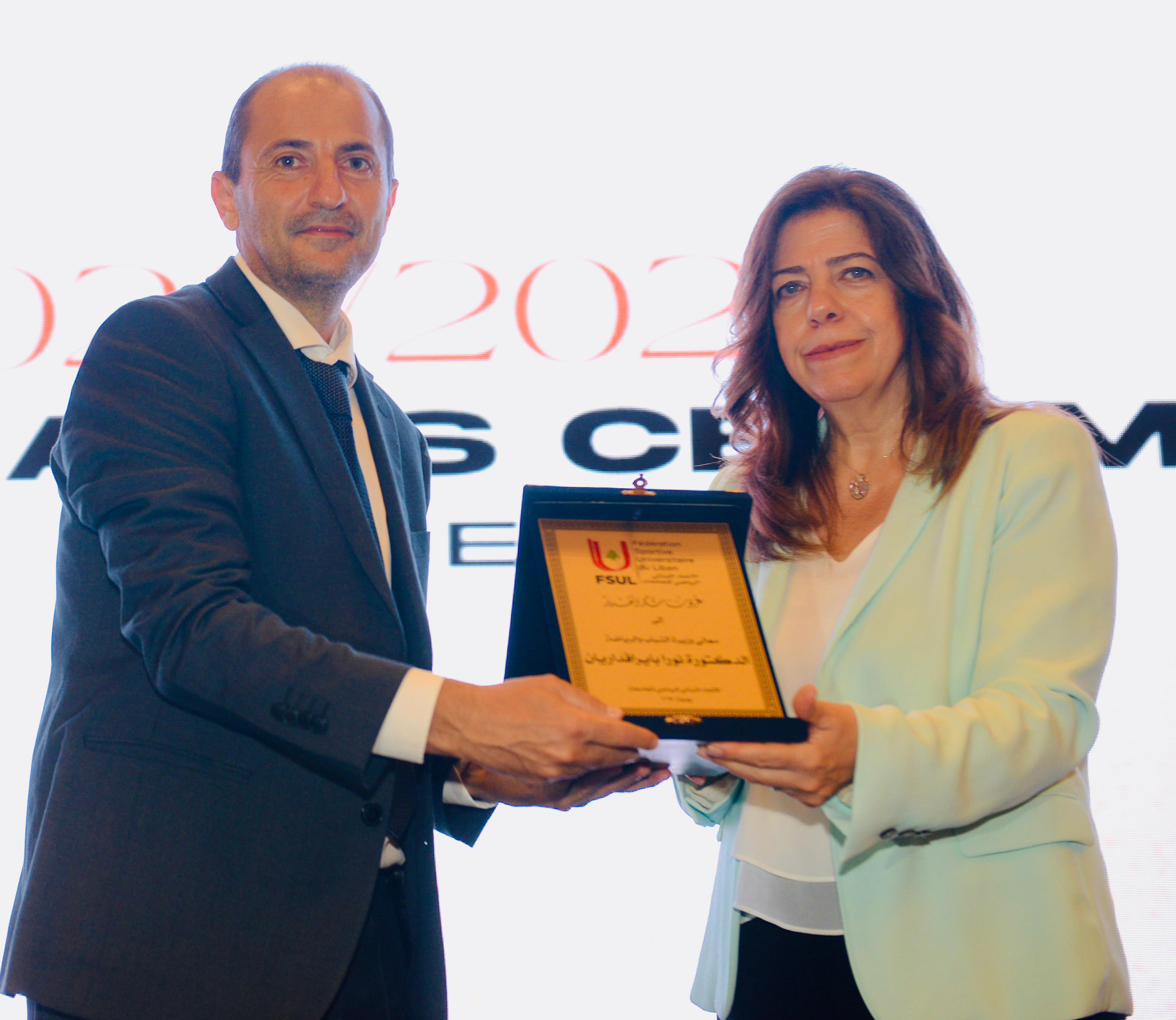شهد الحفل تكريم الجامعة العربية المفتوحة (AOU) لرعايتها الفعالة، وتسليم الدروع للوزيرة بيرقدريان ولمدير الرياضة في جامعة AOU زكريا شرارة. واختتم بتتويج الفرق الفائزة، حيث حصدت جامعة القديس يوسف درع الاتحاد للمرة الرابعة بعد تصدّرها الترتيب العام للنقاط في مختلف البطولات.