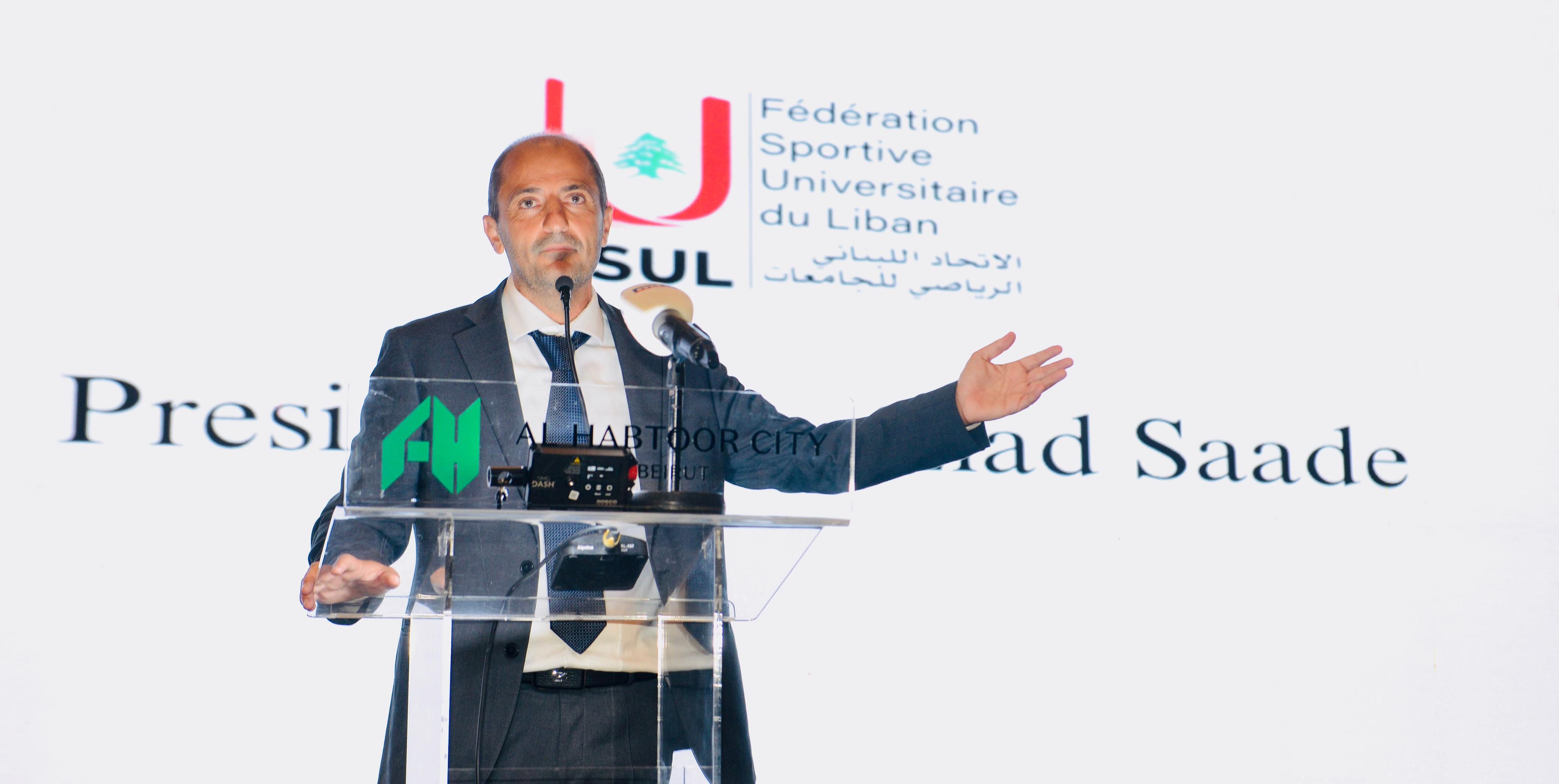 وفي كلمته الافتتاحية، شدّد سعادة على أهمية الرياضة الجامعية في بناء جيل رياضي طموح، مؤكداً أن الاتحاد التزم منذ أربع سنوات بالارتقاء بهذه الرياضة رغم كل التحديات، مضيفاً: "في خضمّ الحرب، رفضنا أن تكون الرياضة الجامعية ضحية إضافية، ونظّمنا موسماً هو الأكبر والأجمل من حيث عدد المباريات ومستوى المنافسة".