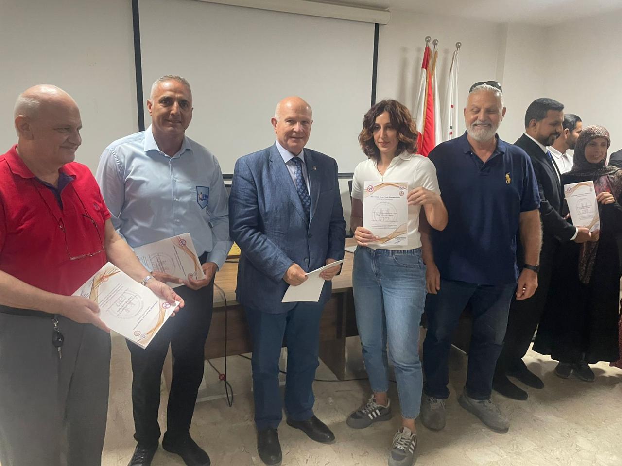 وبعدها قدّم الدكتور جلخ درع اللجنة الأولمبية اللبنانية عربون شكر وتقدير لكل من المرزوقي والقعسماني وشهادات مشاركة على الجميع في أجواء إحتفالية .
