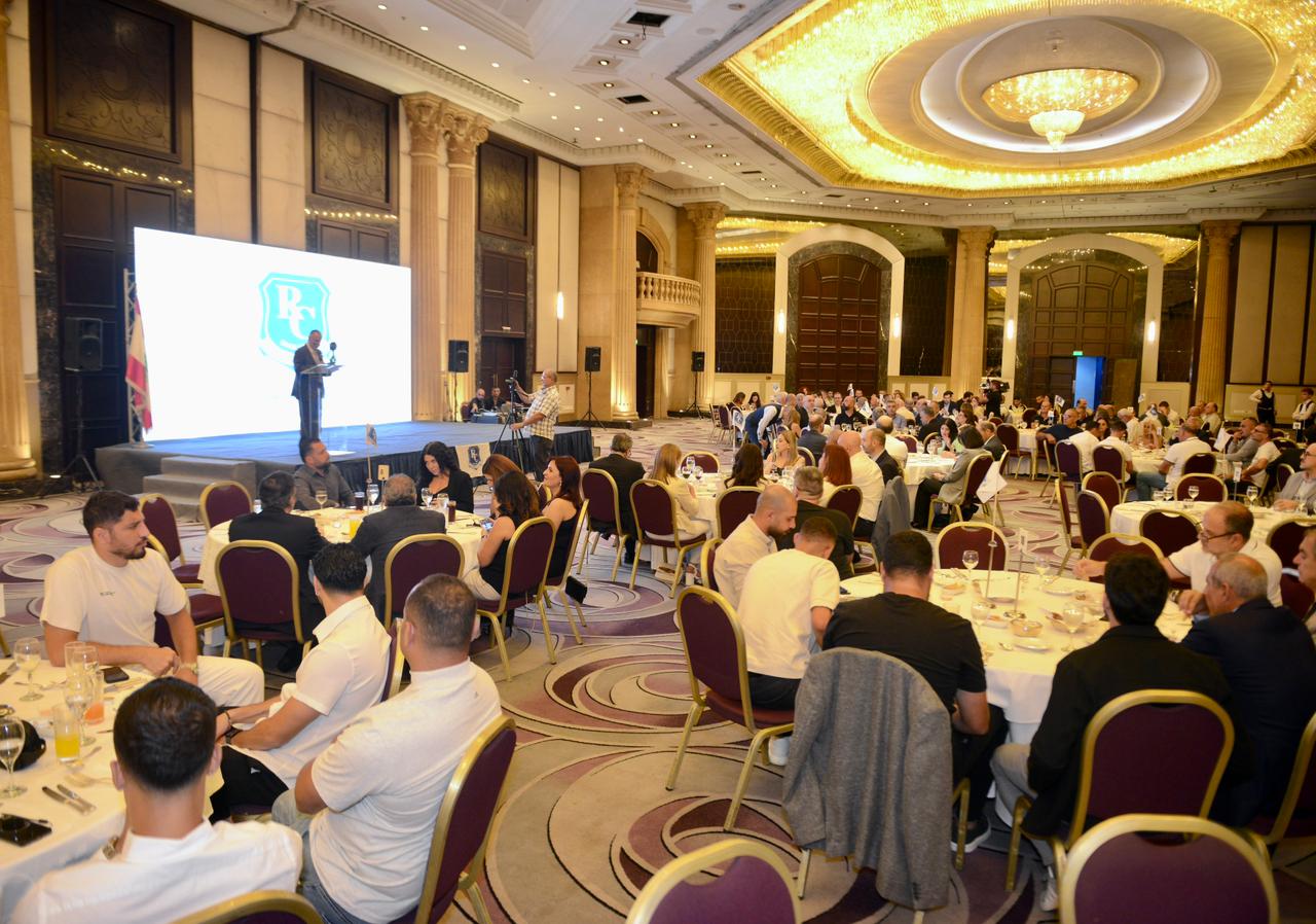 اقام نادي الراسينغ بيروت حفل عشاء في فندق الحبتور سن الفيل، خصص ريعُه لدعم صندوق النادي، بحضور حشد كبير من الشخصيات الرياضية والاقتصادية والاجتماعية والبلدية والجامعية والإعلامية، تقدمهم رئيس بلدية سن الفيل نبيل كحالة وأمين عام الاتحاد اللبناني لكرة القدم جهاد الشحف. افتتح الحفل بالنشيد الوطني اللبناني ونشيد نادي الراسينغ، قبل أن يتحدث عريف الحفل أمين سر لجنة الإنقاذ جورج مراد، متطرّقاً إلى تاريخ النادي منذ تأسيسه عام 1935 وحتى اليوم، مشيراً إلى أنه توّج بلقب بطولة لبنان ثلاث مرات، وأن أبرز محطاته على الصعيدين المحلي والخارجي جاءت من خلال جولاته المتعددة حول العالم، حيث شملت آسيا وأوروبا وأفريقيا، وهو ما أكسبه لقب "القلعة البيضاء" و"سندباد الكرة اللبنانية". ودعا مراد الجميع إلى رص الصفوف والعمل يداً واحدة للوقوف إلى جانب النادي التاريخي، مؤكداً أن النادي قادر على النهوض مجدداً "كطائر الفينيق ينبعث من بين الرماد". بدوره، تحدث رئيس لجنة الإنقاذ زياد سعادة، مشيراً إلى أنه عاش أزمة مشابهة للنادي عام 2001، عندما كان النادي معرضاً للزوال، فجمع الشمل مع اللاعبين الشرفاء وخاض الدوري لفترة موسمين من دون أي بدل مادي، ضحى خلالها الجميع من جيوبهم الخاصة، واستطاعوا إنقاذ النادي وإعادته إلى مكانته الطبيعية عبر رؤساء تعاقبوا على قيادته وهم: جو كوبلي، رفيق عرموني، جورج فرح، كابي فرنيني، وبولا فرعون رزق، التي تركت إرثاً من الشباب المميزين في الفريق الأول والمنتخبات الوطنية، ثم جورج حنا الذي عمل قدر الإمكان للنهوض بالنادي، قبل أن تتولى اللجنة الثلاثية الحالية مسؤولية إدارة النادي. وكشف سعادة عن تعاون جامعة (AUST) لتقديم حصص مجانية في اللغة الإنكليزية، الكومبيوتر والمحاسبة لكل لاعب يرغب في الحصول على الشهادة الجامعية، مما يؤهله مستقبلاً للعمل بعد الاعتزال. كما وجه تحية للاعبي الفريق قائلاً: "أنتم قدا، قادرون على إبقاء النادي في موقعه الطبيعي"، وثمن دور "الوايت تراس" الذي لم يتخلَ عن النادي، واعتبرهم اللاعب رقم 12 الداعم والمحفّز للفريق. واختُتم الحفل بتوجيه الشكر لكل من ساهم ووقف إلى جانب النادي مادياً ومعنوياً، كما شكر القائمون على التنظيم، وهم شربل الحاج موسى، كبريال مراد، حسن حمود، كريستال إيليا، نبيل بشور، وإيلي ناجي حداد، تقديراً لجهودهم في إنجاح الحفل