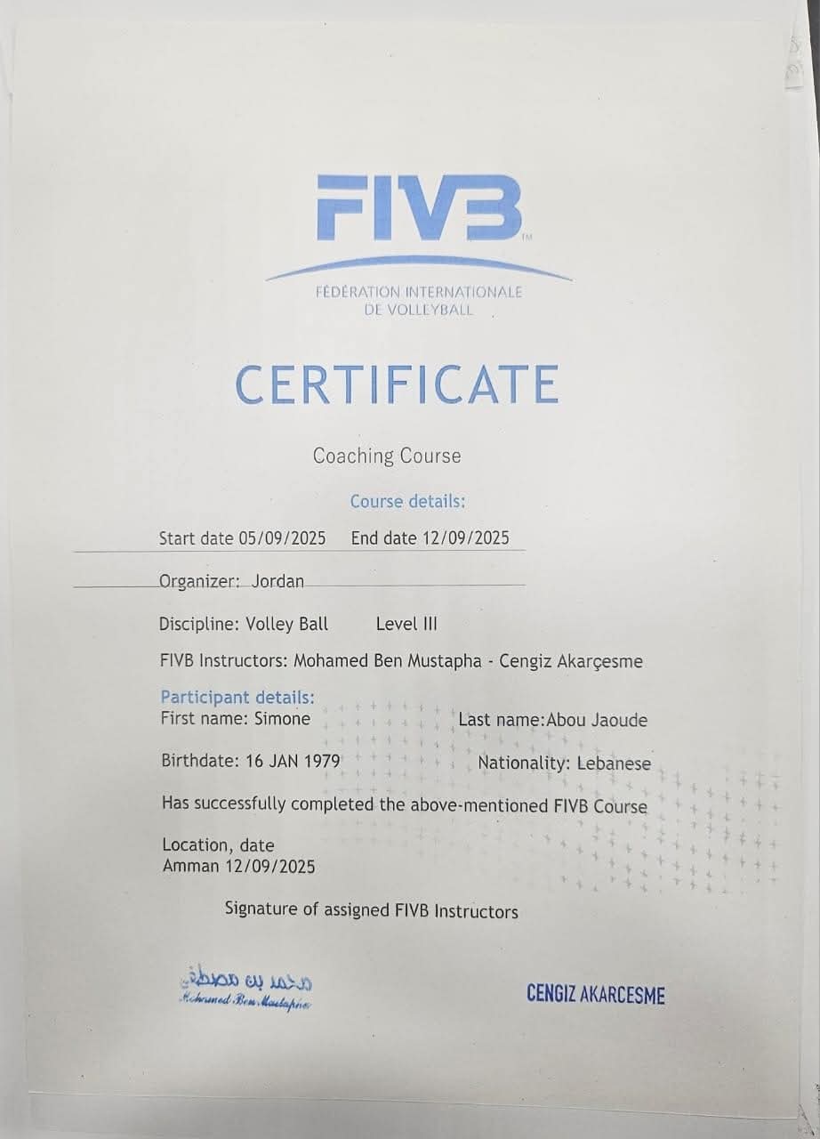 ومن بين المشاركين، نجحت اللبنانية سيمون أبوجودة في اجتياز الدورة وحصد شهادة المستوى الثالث، لتُضيف إنجازاً جديداً إلى مسيرتها التدريبية وتُكرّس حضور لبنان في الساحات الرياضية القارية والدولية.