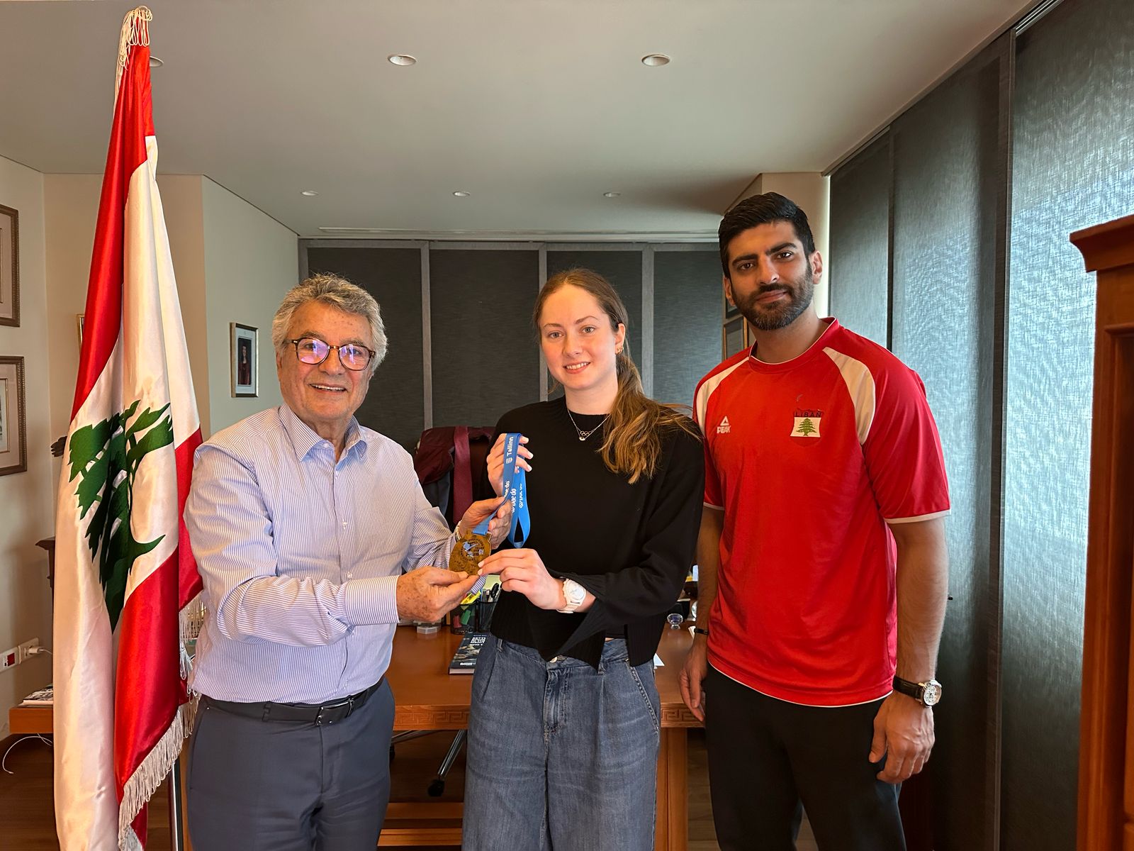 قدّمت بطلة التايكواندو اللبنانية ليتيسيا عون، الميدالية الذهبية التي أحرزتها في بطولة إستونيا المفتوحة إلى الدكتور طلال المقدسي، رئيس "جمعية المقدسي الاجتماعية"، تقديراً لدعمه الدائم لمسيرتها الرياضية. وخلال زيارتها له في سن الفيل، أوضحت عون أن البطولة كانت الأولى لها بعد مشاركتها في أولمبياد باريس 2024، مشيرة إلى أنها تراجعت إلى المركز 11 عالمياً بسبب غيابها عن بعض المنافسات، إلا أن فوزها الأخير سيُعيدها إلى مراكز متقدمة في التصنيف العالمي.