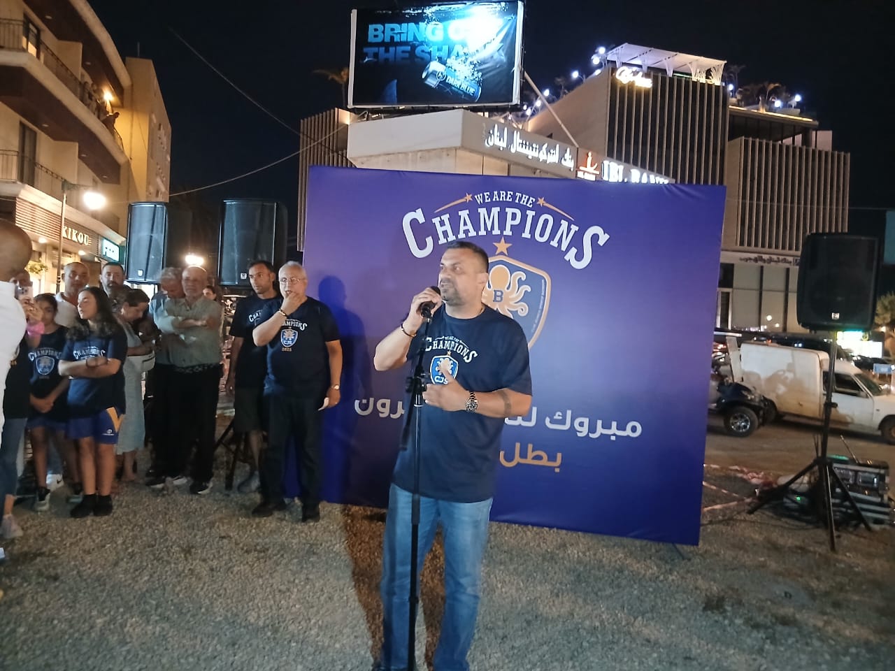 رئيس النادي يوسف باسيل أهدى الفوز واللقب لكافة أبناء المدينة كونها كانت تستحقه، وحيّا اتحاد اللعبة على تنظيم البطولة بشكلها الراقي والمميّز، وكذلك جميع الأندية الصديقة المشاركة، شاكرا كلّ الداعمين للنادي وهم: Tecno، Good times، All brands ، Stephano Cafe ، Deken ، مرشاق غروب ، حولي سبور ، All max ، Phoenix Pet shop، كابيتانو ، ستوديو جمّال ، شركة مياه تنورين، Bet Arabia . كما توجّه بالشكر الجزيل الى مدرب الفريق ويليام الأسمر والجهاز الفني واللاعبين فردا فرداً، والى اللاعب السابع جمهور الفريق الذي تميّز بأخلاقه وروحه الرياضية العالية، وكذلك رجال الصحافة والاعلام والرياضي.