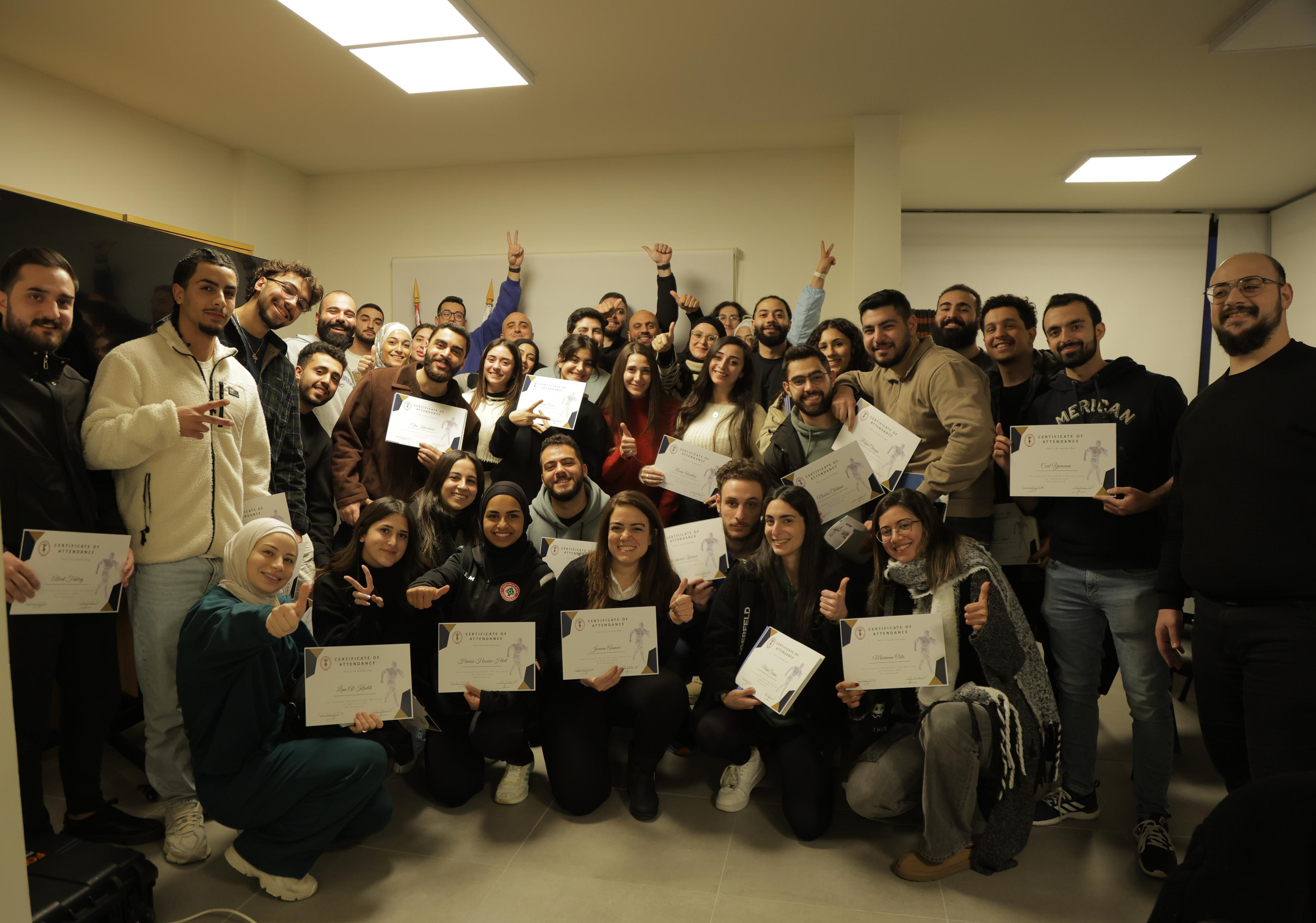 ورشة العمل التي شارك فيها ٤٠ معالجاً فيزيائياً متخصّصاً بالاصابات الرياضية، حاضر فيها الدكتور إيلي متني والدكتور طارق غربال، واستضافت أفضل جراحَين على هذا الصعيد، وهما الدكتور ألفريد خوري والدكتور وسام بويري.