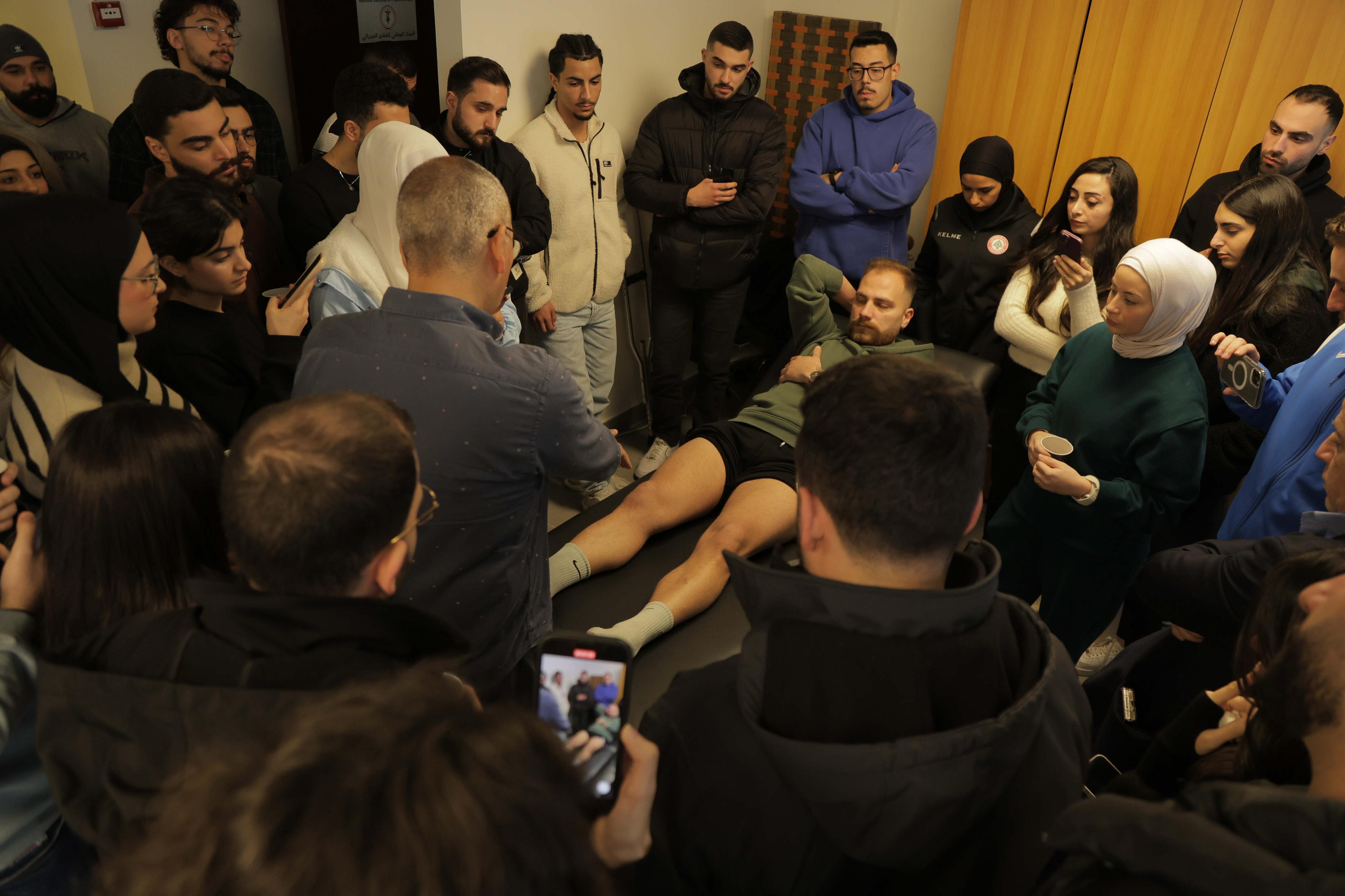 كما تضمّنت عرضاً نظرياً وآخر عملياً مع خوري وبويري حول كيفية فحص المريض المُصاب في الرباط الصليبي الأمامي.