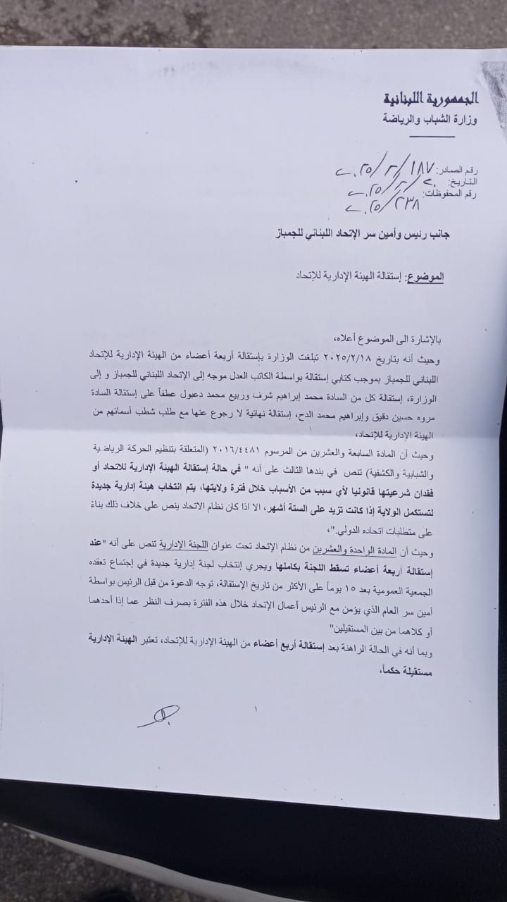 يذكر أن أربعة أعضاء من أصل سبعة كانوا قد تقدموا باستقالاتهم رسميًا إلى وزارة الشباب والرياضة بتاريخ 18 شباط 2025، ما وضع الاتحاد أمام معضلة إدارية تحتاج إلى حل سريع لضمان استمرارية العمل فيه.
