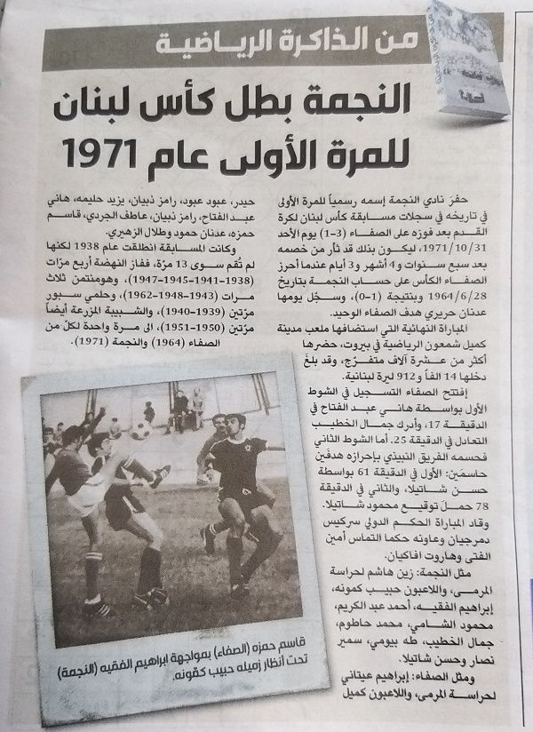 أحرز النجمة لأول مرة في تاريخه كأس لبنان عام ١٩٧١ بفوزه على الصفاء ٣-١