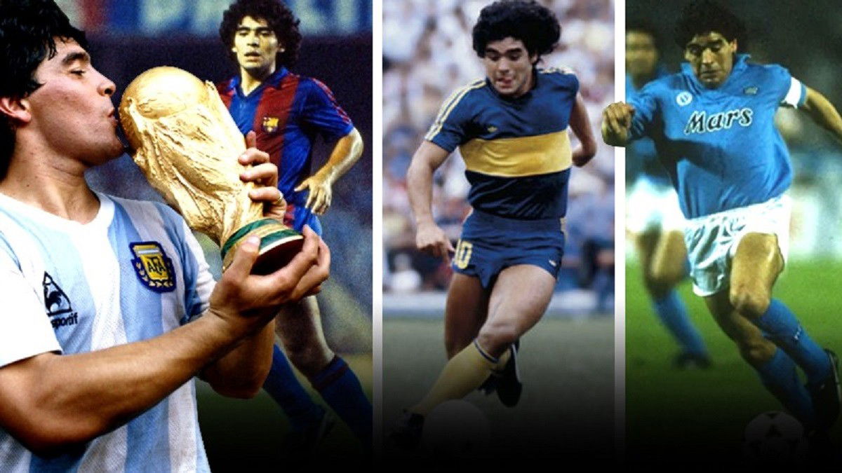 في ٢٠ تشرين الاول ١٩٧٦، شارك مارادونا بشكل احترافي لأول مرة مع ارجنتينوس جونيورز، ضد تاليريس كوردوبا. وكان رقم ١٦ اول رقم ارتداه، وكان أصغر لاعب في تاريخ بطولة الأرجنتين. سجل مارادونا هدفه الأول في الدوري الأرجنتيني ضد سان لورنزو في ١٤ تشرين الثاني ١٩٧٦، بعد أسبوعين من بلوغه ١٦ عاماً. قضى مارادونا خمس سنوات في أرجنتينوس جونيورز، من ١٩٧٦ إلى ١٩٨١، وسجل ١١٥ هدفًا في ١٦٧ مباراة قبل انتقاله الى بوكا جونيورز بقيمة ٤ ملايين دولار، وهو الفريق الذي اراده منذ صغره رغم تلقيه العديد من العروض المغرية آنذاك. وقع مارادونا عقدًا مع بوكا جونيورز في ٢٠ شباط ١٩٨١، وشارك لأول مرة بعد يومين ضد تاليريس كوردوبا، وسجل ثنائية في فوز النادي ٤–١. لعب مارادونا أول مباراة له في السوبر كلاسيكو ضد ريفر بليت على ملعب لا بومبونيرا، وانتصر بوكا على ريفر ٣–٠ وسجل مارادونا هدفاً بعد مراوغة المدافع الشرس البرتو تارانتيني. بعد نهائيات كأس العالم ١٩٨٢، انتقل مارادونا إلى برشلونة في إسبانيا مقابل ٨ مليون دولار. في عام ١٩٨٣، وتحت قيادة المدرب الارجنتيني سيزار لويس مينوتي فاز برشلونة بكأس الملك بتغلبه على غريمه التقليدي ريال مدريد، وفاز بكأس السوبر الاسبانية بتغلبه على اتلتيك بلباو.