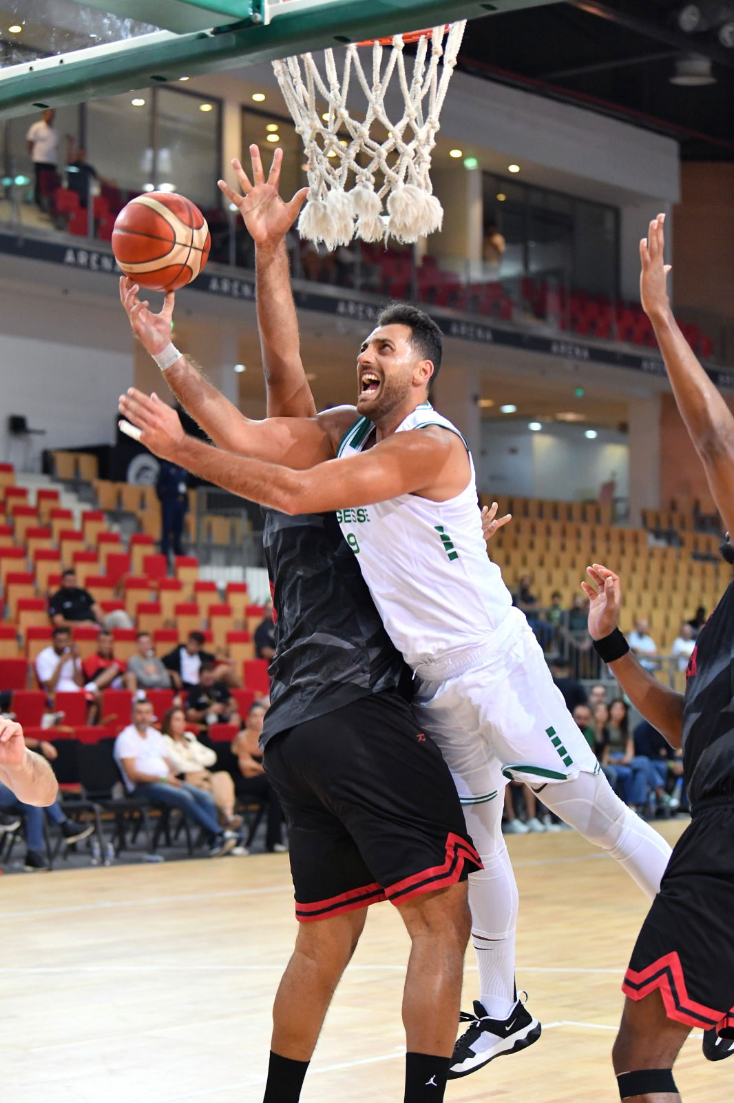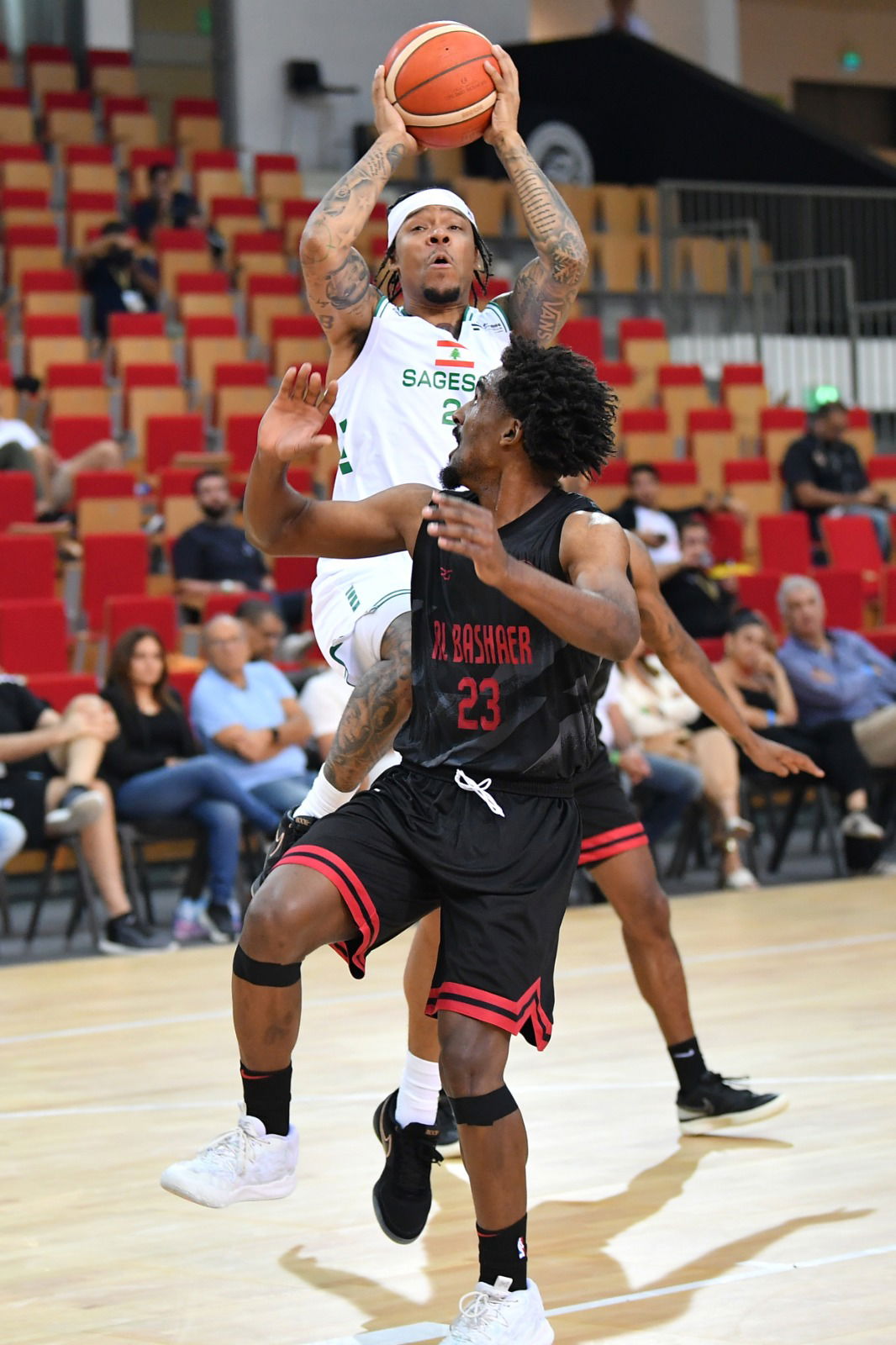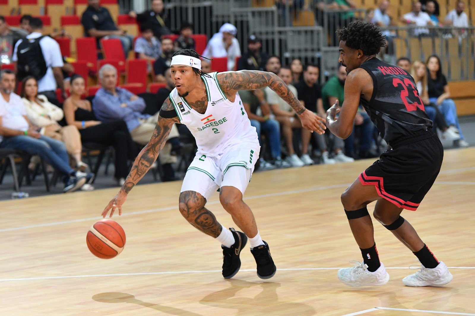 وأشعل فريق الحكمة اللبناني حماس جماهيره الغفيرة التي حضرت المباراة وملأت جنبات الصالة، حيث كان التفاعل الجماهيري ملفتًا طوال اللقاء. شهد الربع الأول من المباراة منافسة قوية بين الفريقين، إذ انتهى بالتعادل (17-17). إلا أن الفريق اللبناني تمكن من بسط سيطرته في الربع الثاني ليتقدم بفارق مريح، منهياً النصف الأول من المباراة بنتيجة (41-29).