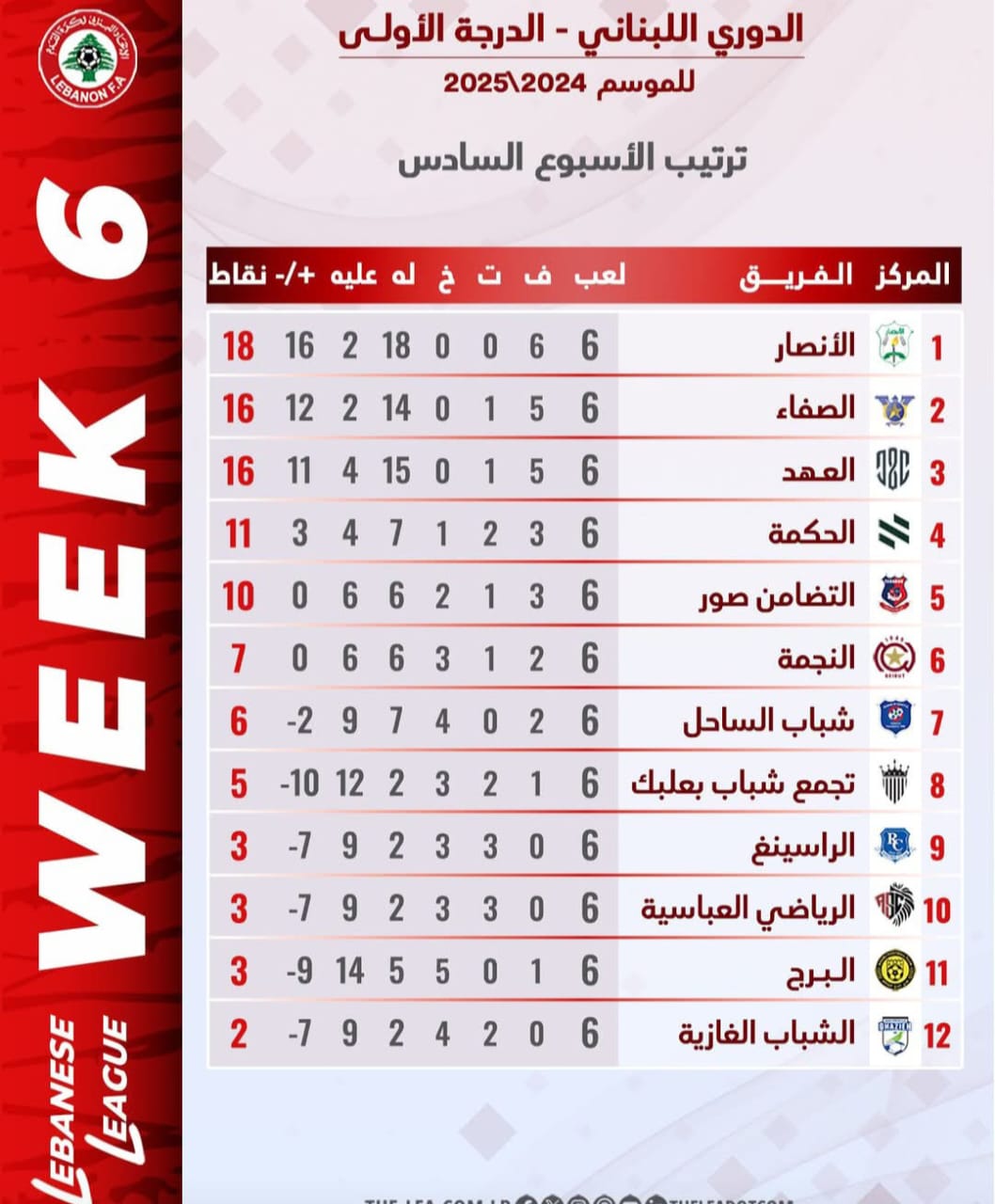 واصل الأنصار تألقه في بطولة لبنان لكرة القدم، مبتعدًا في الصدارة بالعلامة الكاملة، بعدما حقق فوزًا ثمينًا على العهد بنتيجة (4-2) في لقاء القمة الذي جمعهما على ملعب مجمع فؤاد شهاب في جونيه، ضمن افتتاح المرحلة السابعة من البطولة.وبرز قائد الفريق حسن معتوق بتسجيله "هاتريك" في الدقائق (37، 47، 49)، بينما أضاف محمد حبوس هدفًا مبكرًا في الدقيقة الأولى، ليقودا الأنصار لانتصار ثمين. في المقابل، جاء هدفا العهد عبر مصطفى كساب بالخطأ في مرماه (8) ومحمود زبيب (63).