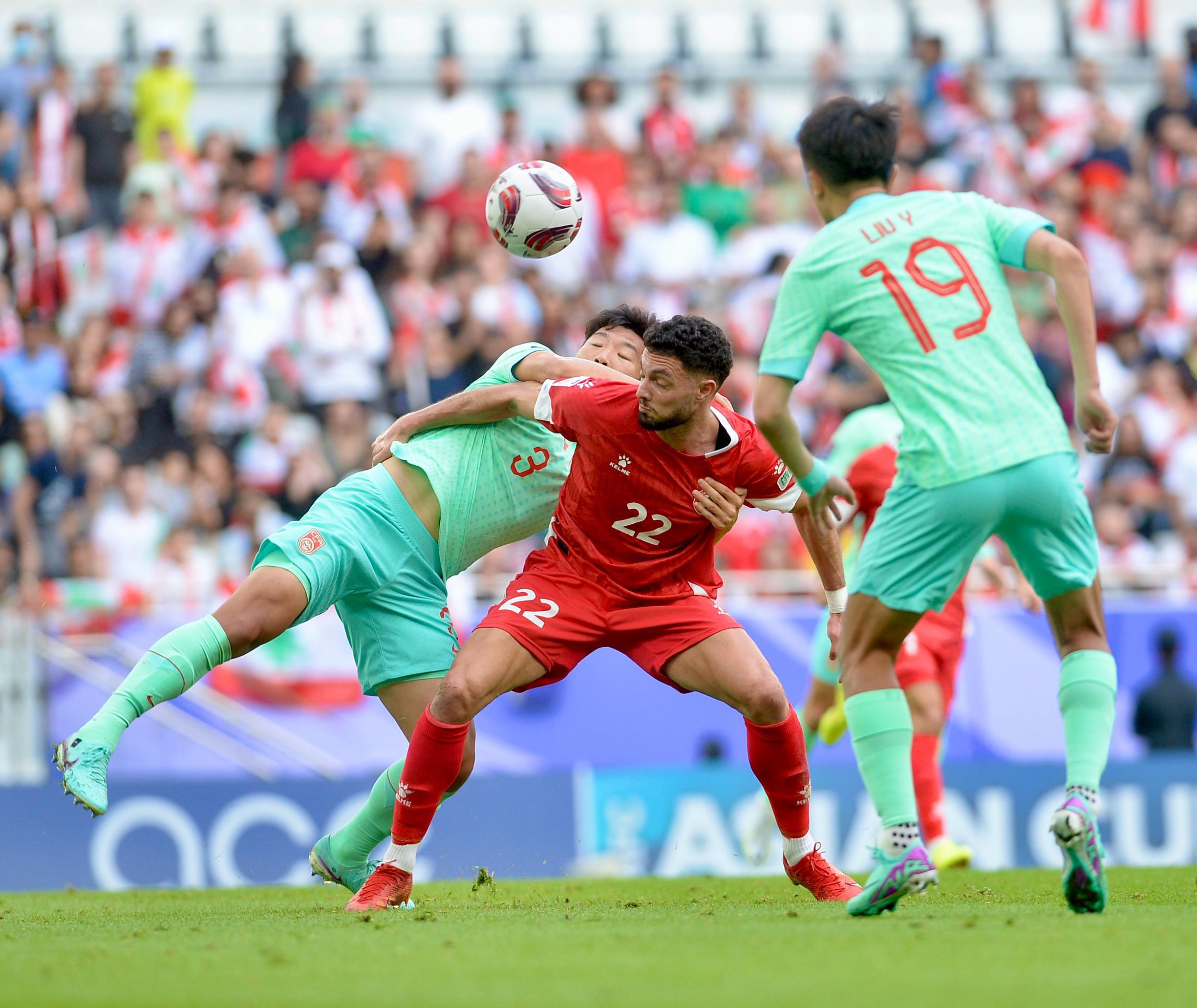عاند الحظ منتخب لبنان لكرة القدم فخرج متعادلاً سلباً مع نظيره الصيني، في المباراة التي اقيمت بينهما على ملعب الثمامة امام حوالي ١٥ الف متفرج، وذلك في افتتاح الجولة الثانية من مباريات المجموعة الاولى لكأس آسيا المقامة في قطر.وقدّم رجال الأرز مباراة كبيرة على مختلف المستويات، وذلك في موازاة تغييرات عدة اجراها المدير الفني المونتينغري ميودراغ رادولوفيتش على تشكيلته، وقد اثمرت صلابةً دفاعية اكبر، وحيوية في خط الوسط، وخطورةً في الهجوم.اخطر الفرص كانت قبل صافرة نهاية الشوط الاول عندما سدّد معتوق كرة قوسية رائعة ارتدت من العارضة الصينية.واستمر مسلسل الفرص اللبنانية في الشوط الثاني، ومعه مسلسل سوء الحظ بعدما صدّت العارضة كرة اخرى من خارج المنطقة للاعب الوسط المتألق حسن سرور في الدقيقة ٥٣، ومن ثم حرمه الحارس يان من الوصول الى الشباك بعدها بعشر دقائق. واختير لاعب المنتخب اللبناني باسل جرادي افضل لاعب في المباراة، وهو قال في المؤتمر الصحافي: "هذه الجائزة يستحقها الفريق كله لان كل لاعب اليوم كان الافضل في هذه المباراة". بدوره، ابدى رادولوفيتش رضاه عن اداء منتخبه، قائلاً: "انا فخور جداً بفريقي الذي قدّم مباراة كبيرة اخرى. لم يحالفنا الحظ للتسجيل لكننا قمنا بعملٍ رائع يمكننا البناء عليه للمرحلة المقبلة بعدما تمكنا من حلّ الكثير من المشاكل".مثّل لبنان: الحارس مصطفى مطر، واللاعبون حسين زين، خليل خميس، نور منصور (اليكس ملكي ١٨)، قاسم الزين، ماهر صبرا، حسن سرور (وليد شور ٩٣)، علي طنيش، باسل جرادي، حسن معتوق (محمد حيدر ٧١)، عمر شعبان (هلال الحلوة ٩٣).
