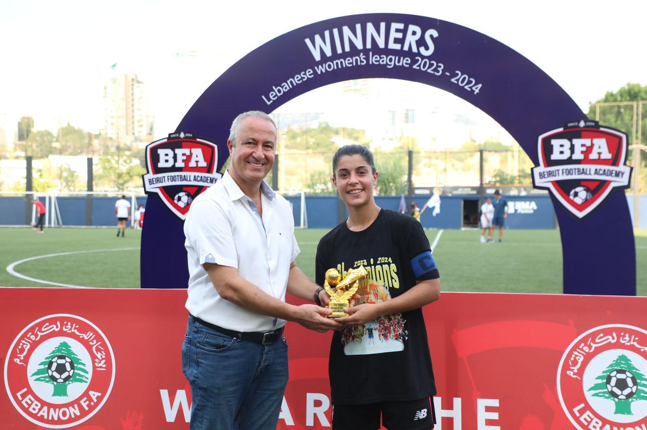 وكان الفريق البطل قد خاض مباراته الأخيرة على ملعبه حيث سلّم في ختامها عضو اللجنة التنفيذية في الاتحاد اللبناني ورئيس لجنة الكرة النسائية اسعد سبليني، ورئيس BFA زياد سعادة كأس البطولة الى الفريق الفائز الذي احزرت لاعبته سينتيا صالحة لقب هدافة البطولة برصيد ٤٠ هدف.