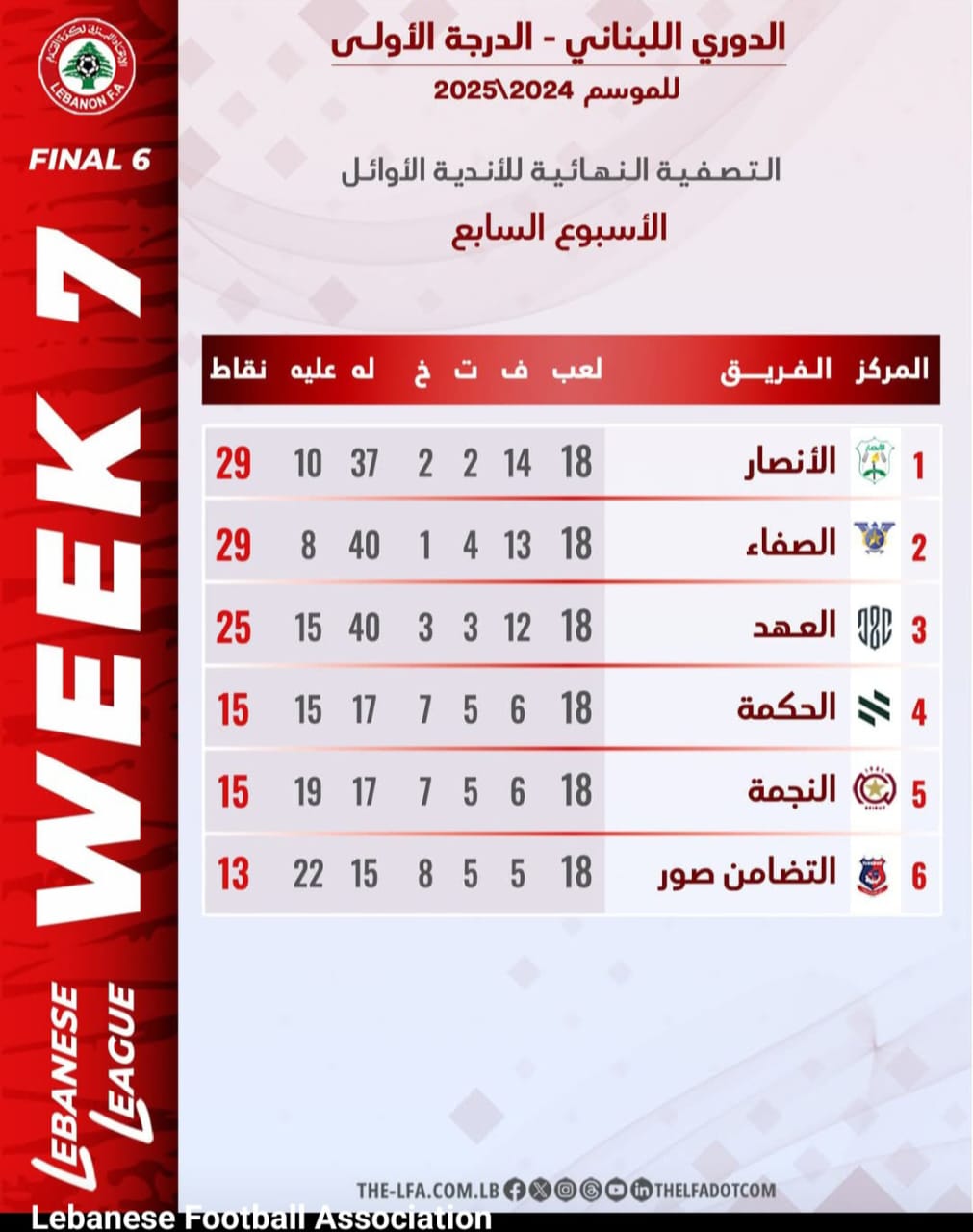 أسدل الستار، مساء الأحد، على منافسات المرحلة السادسة من بطولة لبنان لكرة القدم ضمن سداسية الأوائل، حيث شهدت المباريات إثارة وندية في القمة، وانتصاراً عريضاً في الجنوب.