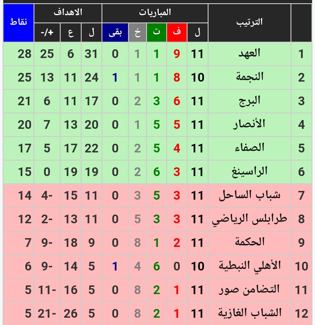 وكان شباب الساحل تعادل مع الاهلي النبطية من دون اهداف في المباراة التي احتضنها ملعب الصفاء، وبذلك يكون رصيده قد بلغ ١٤ نقطة مقابل ٦ نقاط للفريق الجنوبي.
