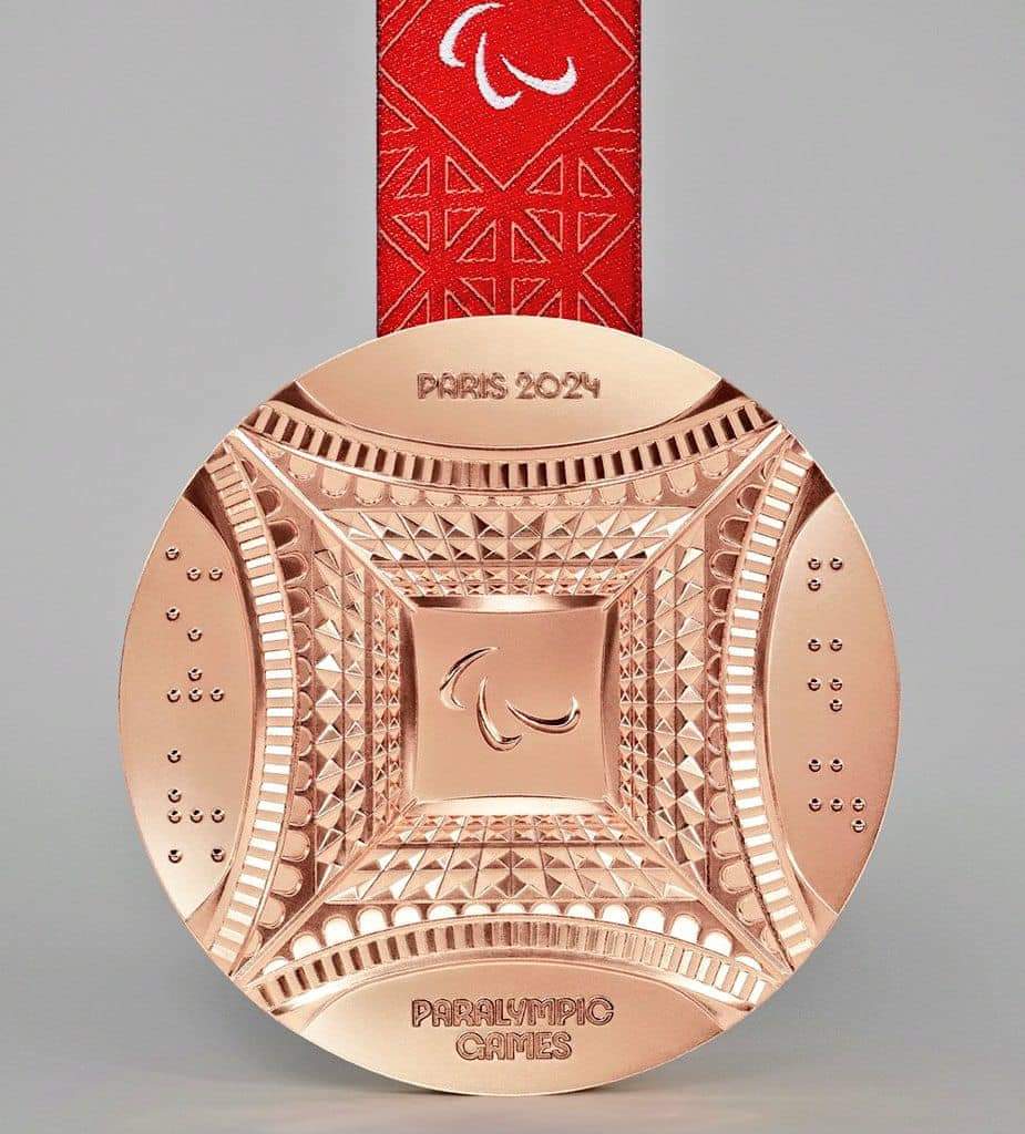 - تصميم خاص للميداليات البارالمبية: تحمل الميداليات البارالمبية على ظهرها نقشًا لمشهد لمسي لبرج إيفل، بالإضافة إلى نقش "باريس 2024" بنمط برايل، تكريمًا للباريسي لويس برايل، مخترع نظام الكتابة للمكفوفين.