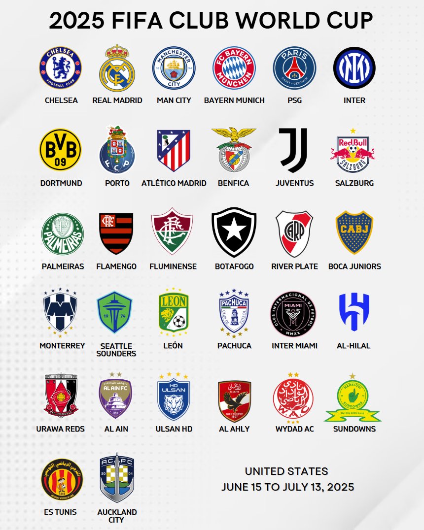 أعلنت صحيفة "ديلي ميل" البريطانية عن التصنيفات الجديدة للأندية المشاركة في النسخة المقبلة من بطولة كأس العالم للأندية، التي ستُقام بنظامها الجديد بمشاركة 32 فريقاً بدلاً من 7 فرق، وذلك في الولايات المتحدة خلال الفترة من 15 حزيران إلى 13 تموز 2025.