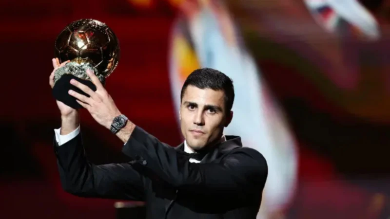 في حفل استثنائي أُقيم على مسرح "دو شاتليه" في باريس، تُوّج الإسباني رودري، لاعب مانشستر سيتي، بجائزة الكرة الذهبية لعام 2024، ليصبح أول لاعب وسط دفاعي يفوز بهذه الجائزة منذ الألماني لوتار ماتيوس في 1990. وقد تألق رودري مع مانشستر سيتي خلال الموسم الماضي، حيث ساهم في الفوز بالدوري الإنكليزي الممتاز للمرة الرابعة على التوالي، كما قاد منتخب إسبانيا للفوز ببطولة أوروبا وحصل على جائزة أفضل لاعب في البطولة.