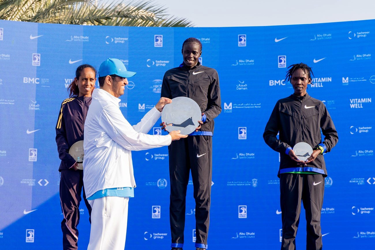 توّج العداء الإثيوبي تشالا كيتيما ريغاسا بلقب النسخة السادسة من ماراثون أدنوك أبوظبي 2024، الذي أُقيم وسط مشاركة واسعة وحضور جماهيري كبير. ونجح ريغاسا في إنهاء مسار السباق بزمن قدره 2:06:16 ساعة، متفوقًا بفارق ضئيل على منافسه الجيبوتي إبراهيم حسن بوح الذي حل ثانيًا بزمن 2:06:33 ساعة، فيما جاء الكيني ويلفريد كيروا كيغن في المركز الثالث بزمن 2:06:47 ساعة.