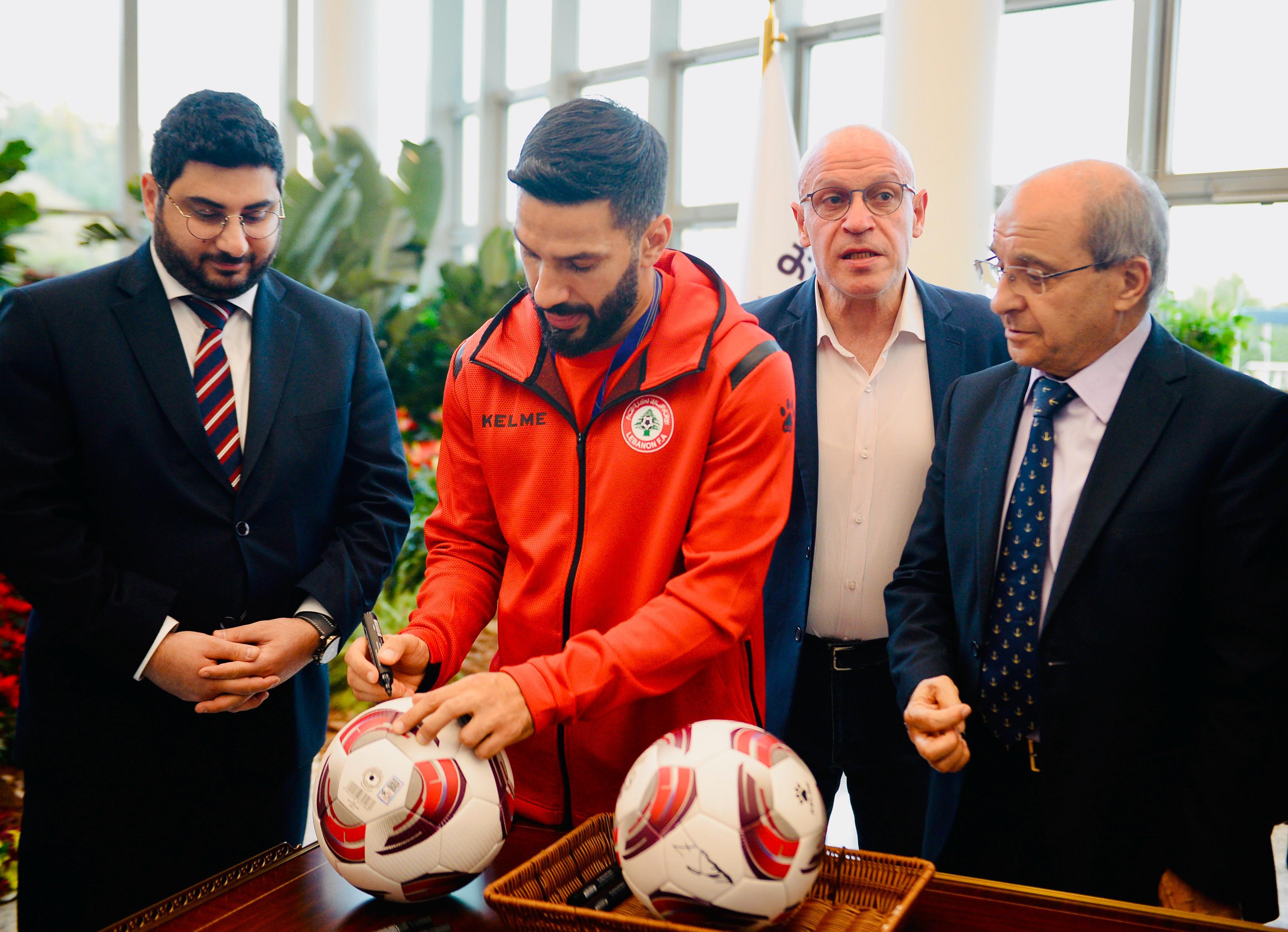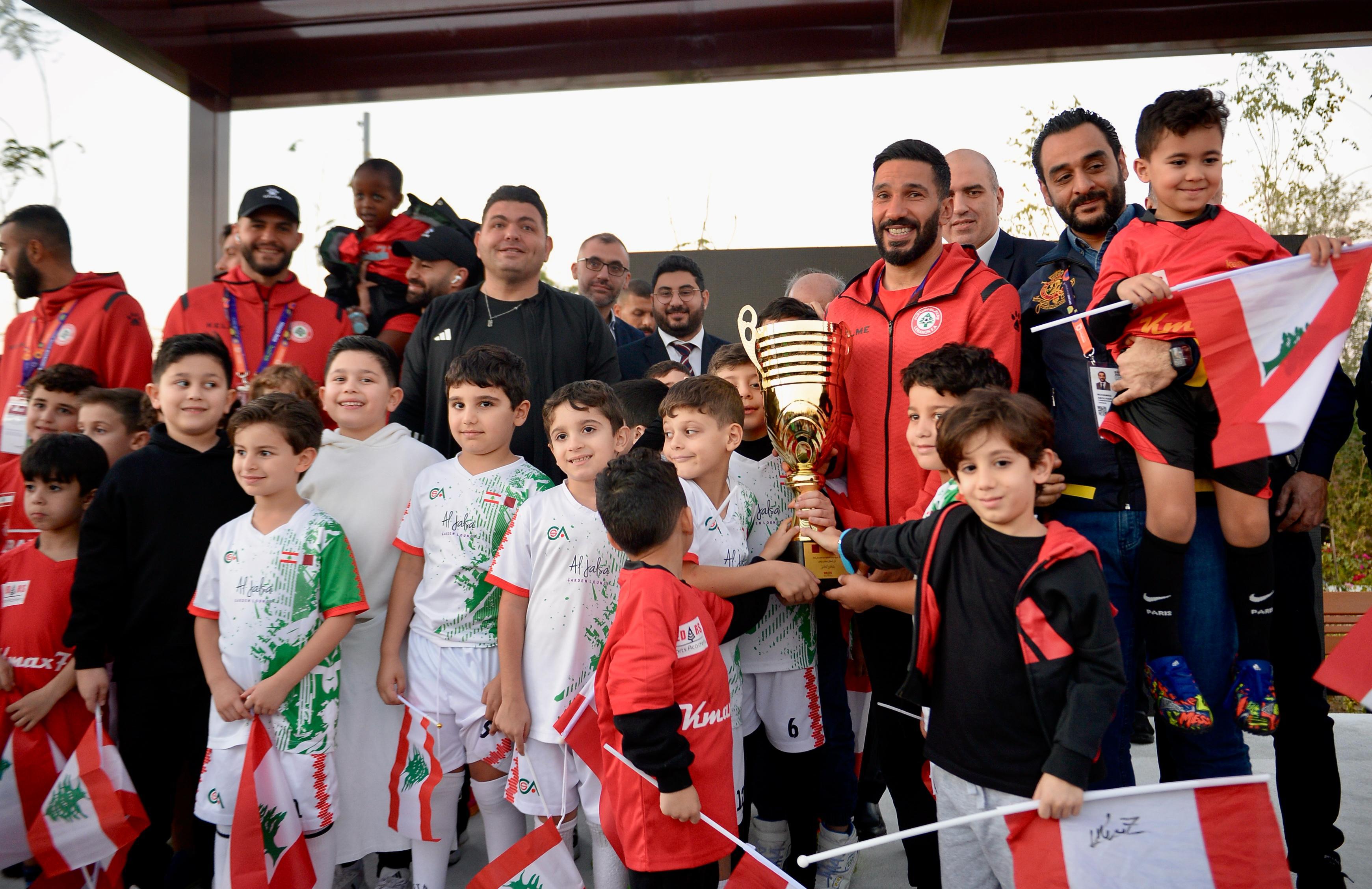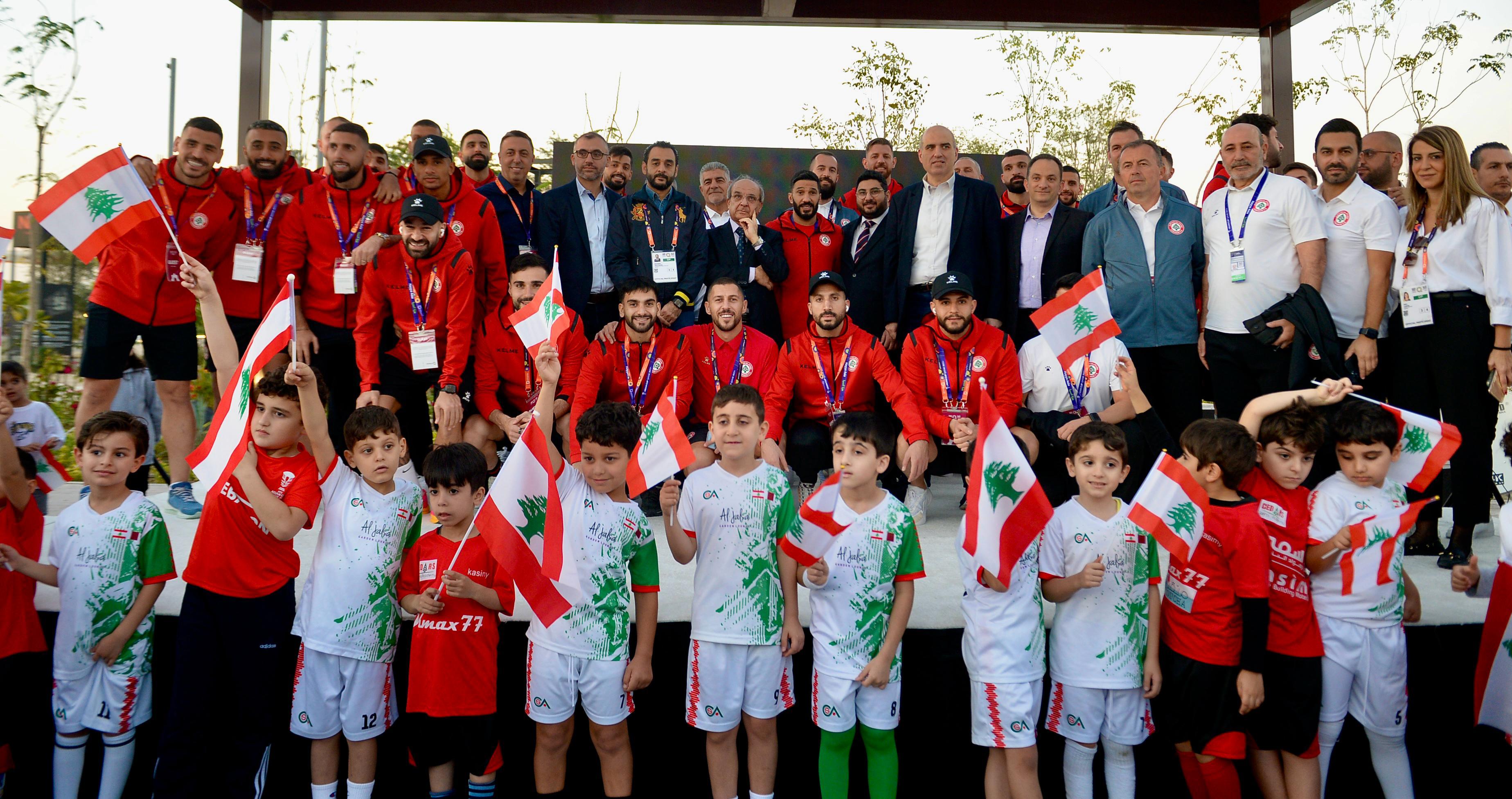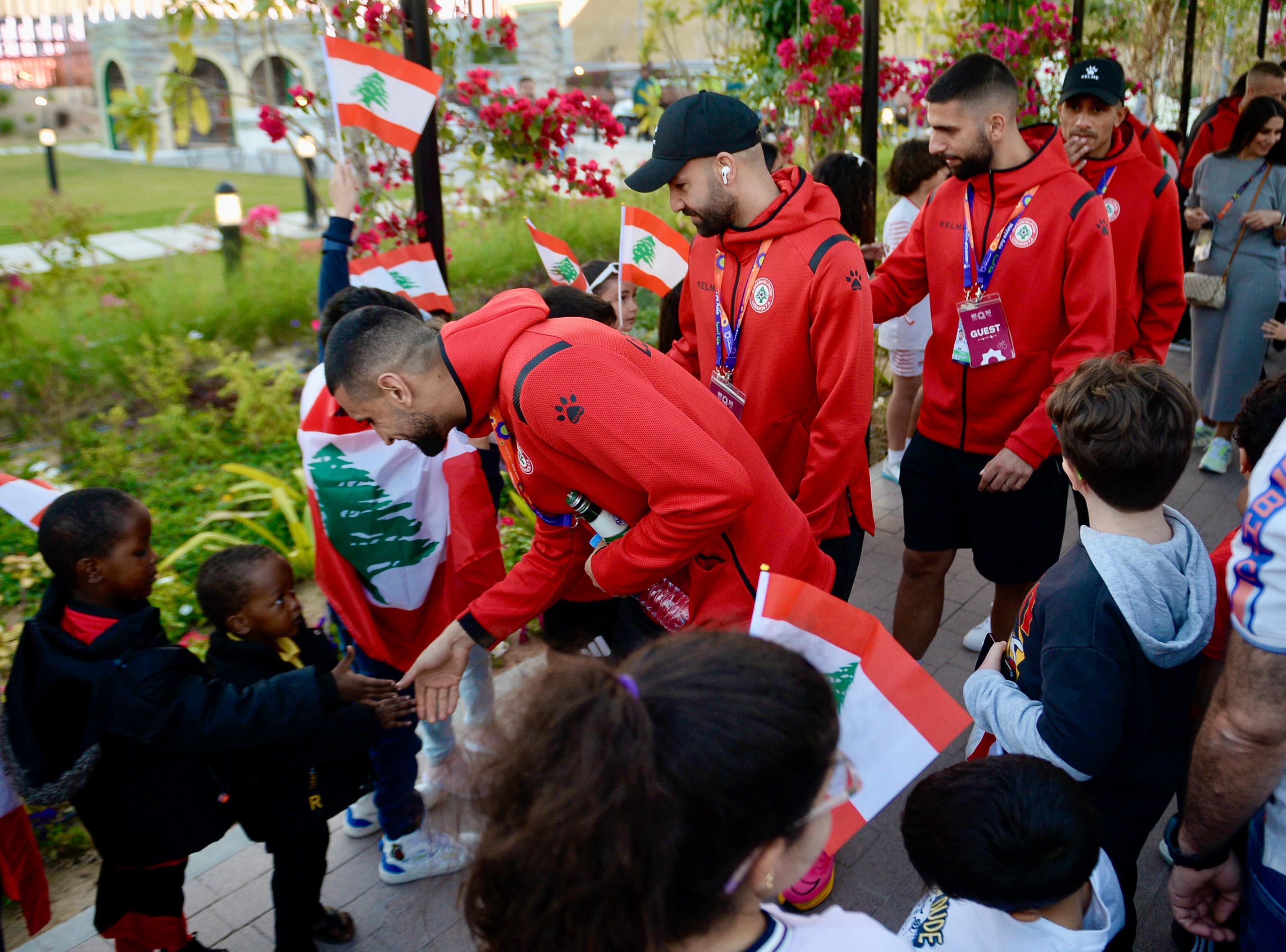 The Lebanese national football team received a massive welcome during their visit to the Lebanese pavilion at Expo Qatar. Among those greeting them were the Minister of Youth and Sports, Dr. George Kallas, along with the two commissioners at the Lebanese pavilion: the Director General of the Ministry of Economy, Dr. Mohammad Abu Haidar, and the Director General of the Ministry of Agriculture, Engineer Louis Lahoud. The visit, which the Lebanese Embassy had scheduled and promoted before the start of the AFC Asian Cup finals, was met with a tremendous response from members of the Lebanese community in Doha, the Qatari capital. They gathered to cheer on the team and express their support, affirming their unwavering backing regardless of the results achieved in the Asian tournament, which features the top 24 teams from the world's largest continent. The team toured some of the Expo's halls accompanied by organizers and embassy staff. At the end of the tour, a group of children presented the team with a commemorative trophy, which was accepted by captain Hassan Maatouk. The public then took photos with the players and obtained their autographs amidst an exceptional atmosphere filled with patriotic chants in support of the national team. Rice.