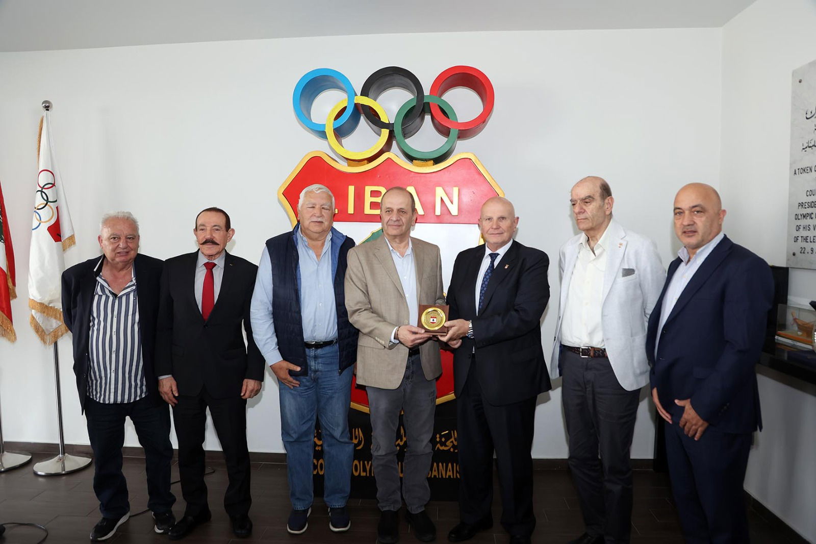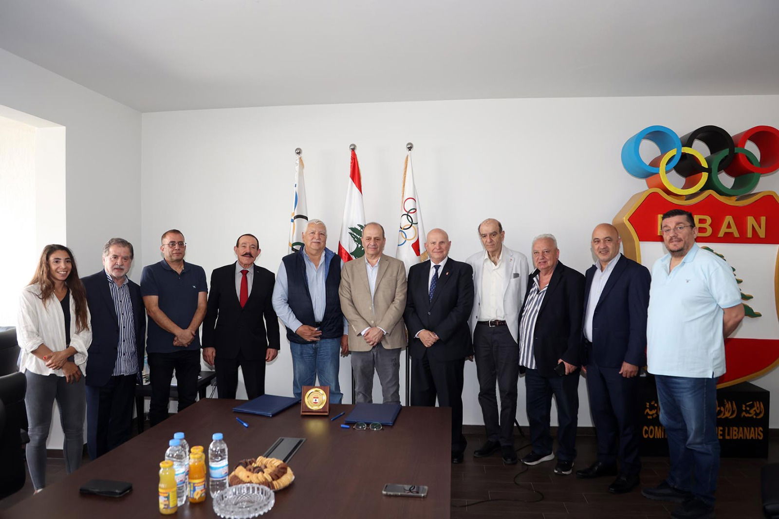 The signing ceremony, which took place at the Olympic Committee headquarters in Baabda, was attended by Dr. Jalakh and Sheikh Daher, as well as members of the Olympic Committee's Executive Committee, including Vice Presidents Jack Tamer and Asaad Nakhle, Secretary General Jawdat Shaker, Treasurer Attorney Francois Saadeh, Committee Member Rafi Mamjoghlian, Head of the Sports Department at LBCI Khaled Mjaess, and journalist Mona Yacoub from the Sports Department.