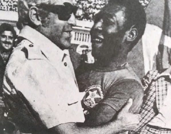 _ بيليه ارتدى الفانلة رقم ١٠ كالمعتاد ولكنها تمايزت عن غيرها من فانلات الفريق حيث كتب عليها الملك بيليه.