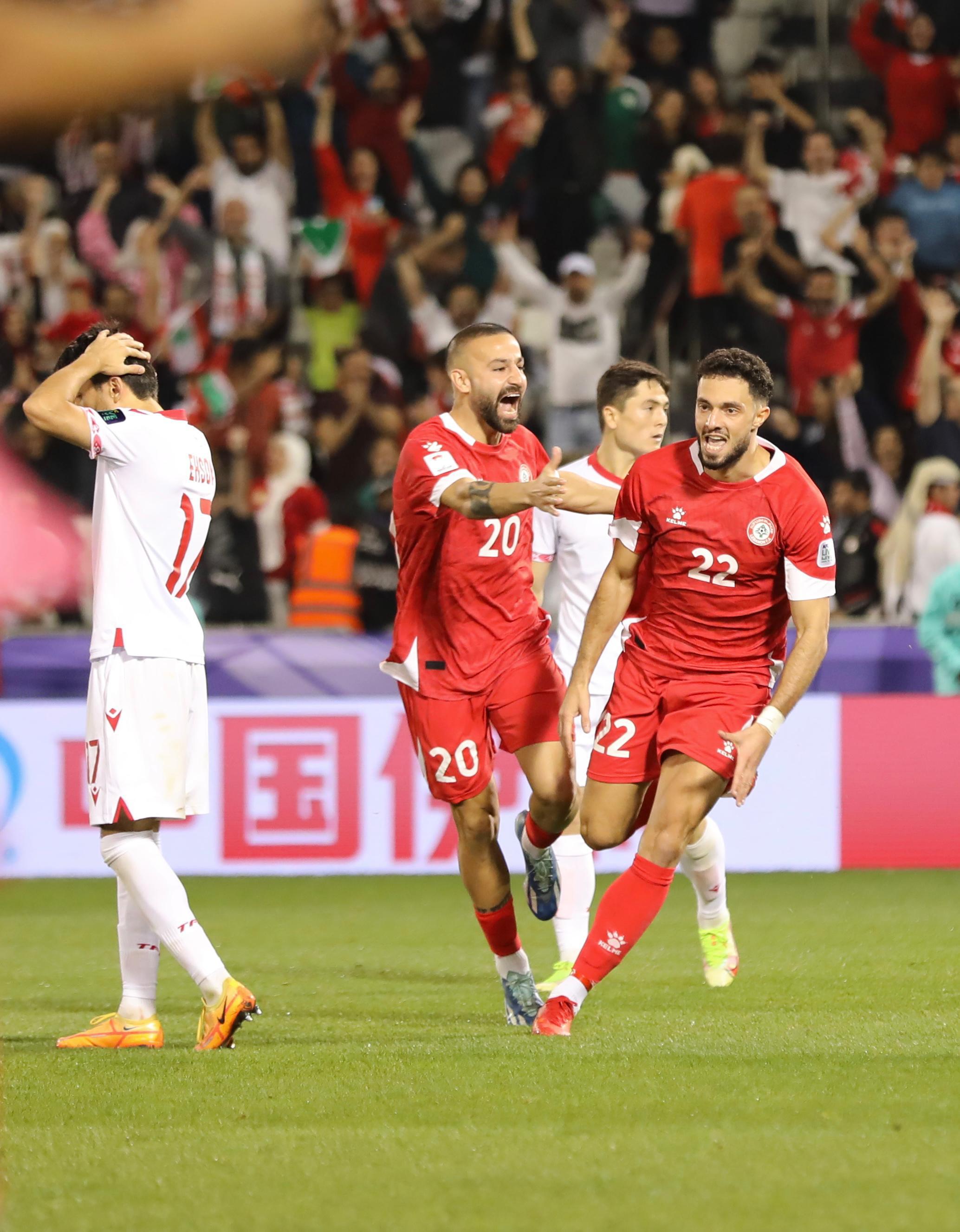 ودّع منتخب لبنان نهائيات كأس آسيا لكرة القدم، بعد خسارته أمام طاجيكستان (١ - ٢) في المباراة التي جمعتهما على ملعب جاسم بن حمد أمام أكثر من ١٠ آلاف متفرجاً أغلبهم من الجالية اللبنانية، تقدم لبنان بواسطة باسل جرادي (د.٤٧)، لكن طرد المدافع قاسم الزين بدّل المعطيات بسبب خطأ متهوّر (د.٥٦). ردّت طاجيكستان بهدفين عبر بارفيزدزون عمرباييف (د.٨٠) ونور الدين خامروكولوف (د.٩٠+٢).