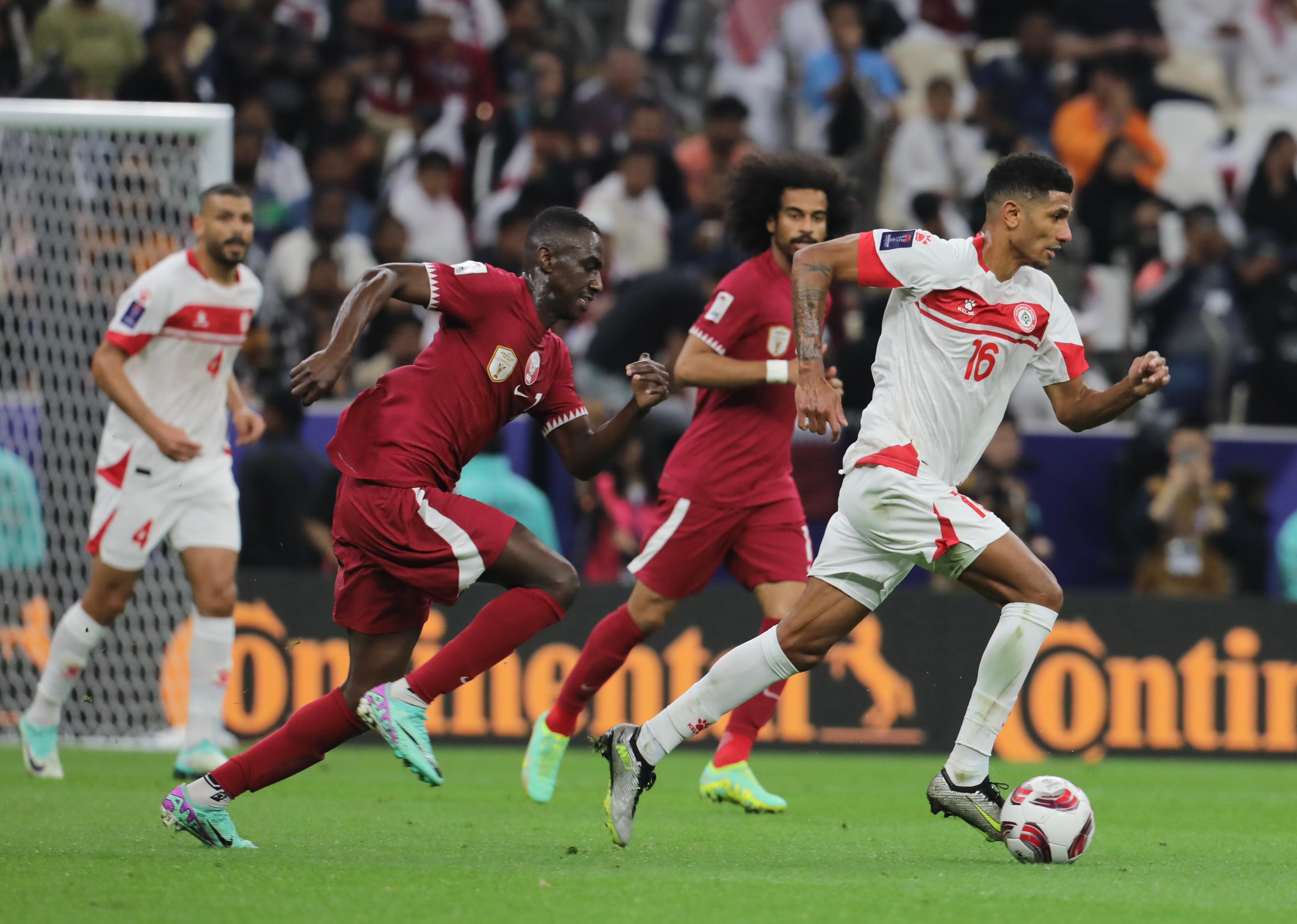 حسم منتخب قطر بطل آسيا المواجهة الافتتاحية لنهائيات كأس آسيا لكرة القدم بفوزه على نظيره اللبناني ٣-٠، في المباراة التي اقيمت بينهما على ملعب لوسيل في العاصمة القطرية الدوحة. وكان لعاملي الارض والجمهور الدور الكبير في منح قطر فوزاً مهماً في مستهل مشوار دفاعها عن لقبها، أضف اليهم خبرة لاعبيها، فيما كان المنتخب اللبناني قاب قوسين من إقتناص هدف أو اكثر لولا التسرع والرعونة والحظ السيء. الهدف الاول سجله اكرم عفيف اخطر لاعبي "العنابي" من كرة تهيأت له من المعز علي داخل المنطقة فسددها بدقة الى يسار الحارس مصطفى مطر في الدقيقة الاخيرة من الشوط الاول. وكلّفت الاخطاء الدفاعية منتخبنا هدفين في الشوط الثاني، اولهما برأسية المعز علي غير المراقب فارتقى لها من مسافة قريبة ليحوّلها الى المرمى (د.٥٧)، وثانيهما في الدقيقة السادسة من الوقت المحتسب بدل عن ضائع اثر مجهود فردي من اكرم عفيف، بينما لاحت فرصتان للبديل عمر شعبان، لكن من دون ان يتمكن من التسجيل من تسديدة ومن ثم من كرة رأسية. ورغم الخسارة، اثنى المدير الفني المونتينغري ميودراغ رادولوفيتش في المؤتمر الصحافي عقب اللقاء على اداء لاعبيه الذين قدّموا مجهوداً جباراً ولم يستحقوا الخسارة بهذه النتيجة التي سنضعها خلفنا لنشرع مباشرةً في التحضير لمباراة الصين . واعتبر "رادو" ان الهدف الاول جاء بعد خطأ واضح على المدافع قاسم الزين، معتبراً ان نجم قطر اكرم عفيف "حسم المباراة لمنتخبه بقدراته الفردية العالية التي نصّبته واحداً من افضل لاعبي آسيا، والتي تخوّله حتى للعب في اوروبا".مثّل لبنان: الحارس مصطفى مطر، واللاعبون اليكس ملكي، قاسم الزين، نور منصور، حسين زين، نصار نصار (سوني سعد ٨٠)، وليد شور (حسن سرور ٦٩)، علي طنيش، محمد حيدر (عمر شعبان ٦٩)، باسل جرادي (غابريال بيطار ٨٠)، حسن معتوق (هلال الحلوة ٦٩).