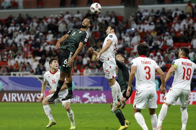 تقدم منتخب طاجيكستان في الدقيقة ٣٠ من عمر اللقاء عن طريق وخدات خانونوف، وتعادل الإمارات عبر خليفة الحمادى فى الدقيقة ٩٥، لتتجه المباراة إلى وقت إضافى على شوطين إضافيين ثم إلى ركلات الترجيح لتحديد المتأهل إلى ربع نهائى كأس آسيا. وفى ركلات الترجيح أهدر كايو كريا ركلة جزاء للإمارات بينما سجل طاجيكستان الـ٥ كرات ليحسم التأهل التاريخي إلى ربع نهائي كأس آسيا.
