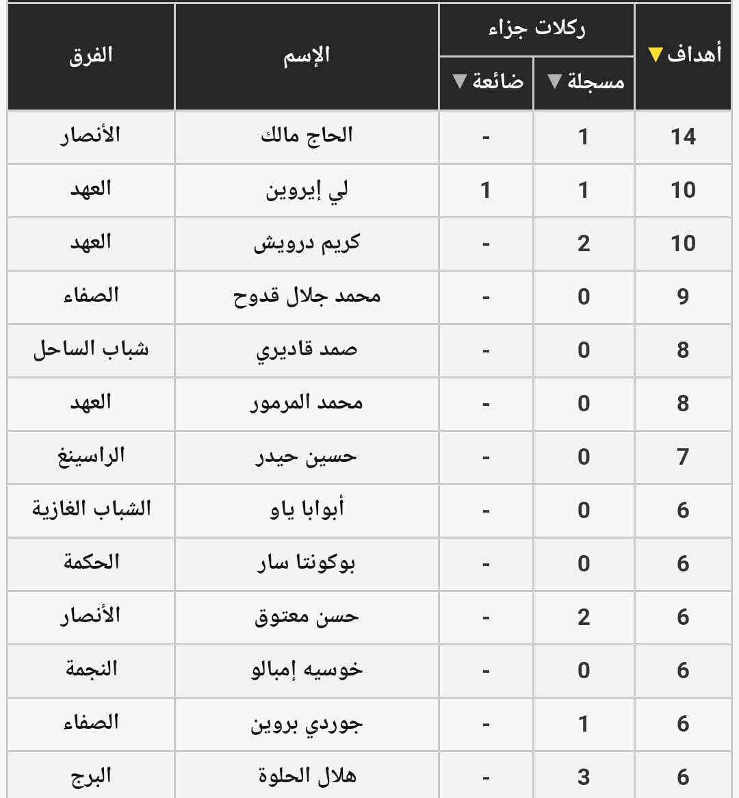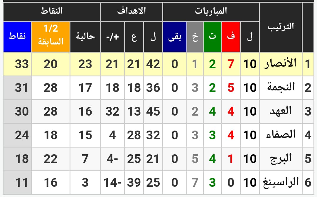 انتهت مباراة الديربي بين قطبي الكرة اللبنانية بين الانصار والنجمة بفوز الاول بنتيجة (2-1) في اللقاء المشهود الذي احتضنه ملعب طرابلس البلدي في ختام المرحلة العاشرة لبطولة لبنان لكرة القدم لسداسية الآوائل. وجاء اللقاء كالعادة مثيرًا وشيقًا حيث سعى كل فريق على كسب النقاط الثلاث املًا في الابتعاد في الصدارة، ورغم الفرص الضائعة من الجانبين الا ان الحظ ابتسم للفريق الاخضر الذي تقدم في الدقيقة (35) بواسطة هدافه السنغالي الحاج مالك تال الذي رفع رصيده الى 14 هدفًا في صدارة الهدافين، واضاف قائد الفريق حسن معتوق (58)، هدف التقدّم من ضربة جزاء ، قبل ان يقلص الفارق سعيد عواضه للنجمة (73). وبهذه النتيجة استعاد الانصار الصدارة برصيد ( 33 نقطة) بفارق نقطتين عن النجمة (31 نقطة).