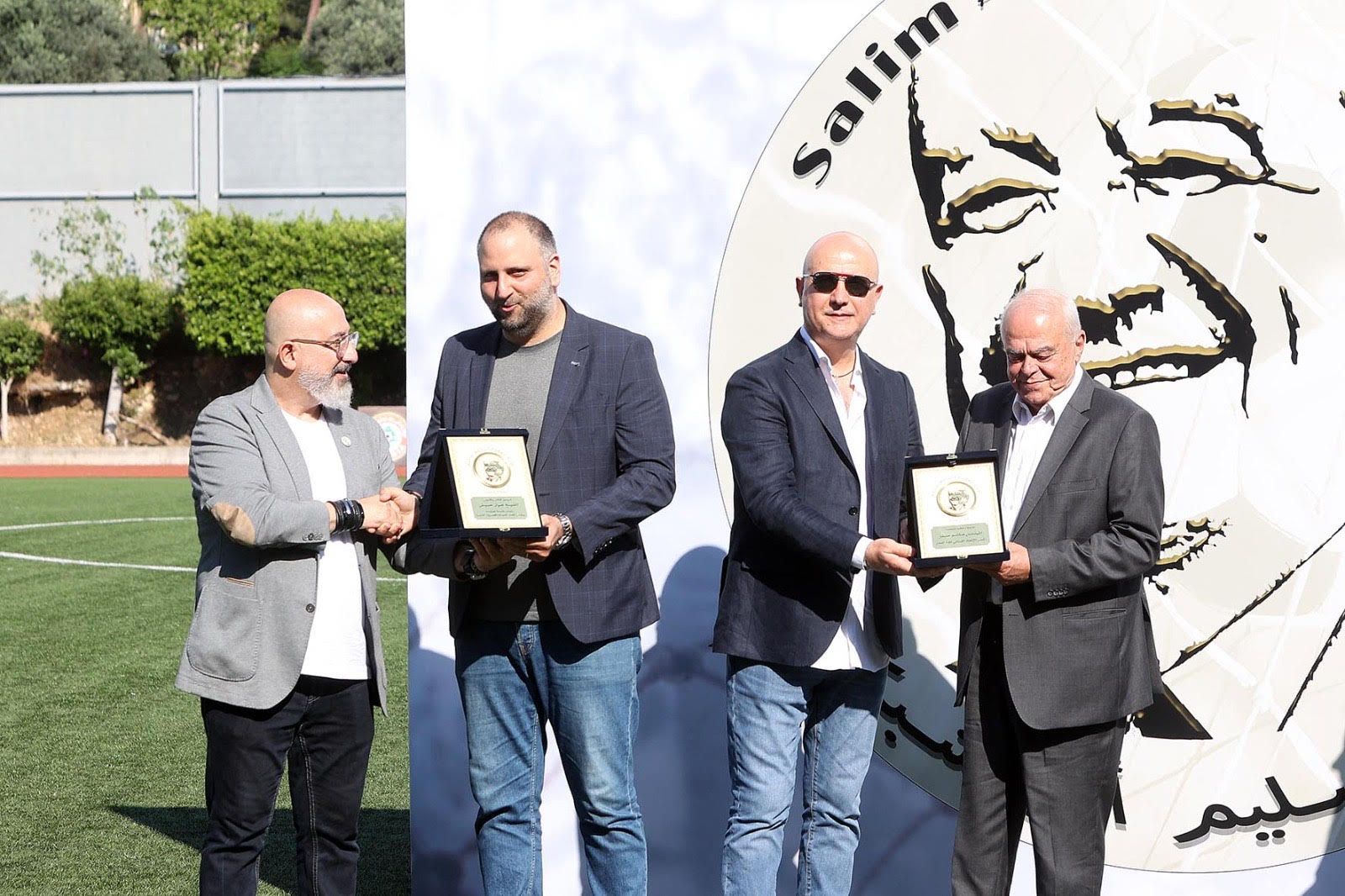 وفي استراحة الشوطين، سلّمت عائلة الراحل الدروع التكريمية الى نائب رئيس الاتحاد اللبناني لكرة القدم ريمون سمعان ممثلاً نائب رئيس الاتحاد الآسيوي ورئيس الاتحاد اللبناني المهندس هاشم حيدر والى نائب رئيس بلدية جونيه روي الهوا ممثلاً رئيس اتحاد بلديات كسروان- الفتوح ورئيس بلدية جونيه الشيخ جوان حبيش. وتسلّم الاعلامي فارس كرم الدرع التكريمي باسم رئيس مجلس ادارة محطة الـ"أم تي في" ميشال المر.