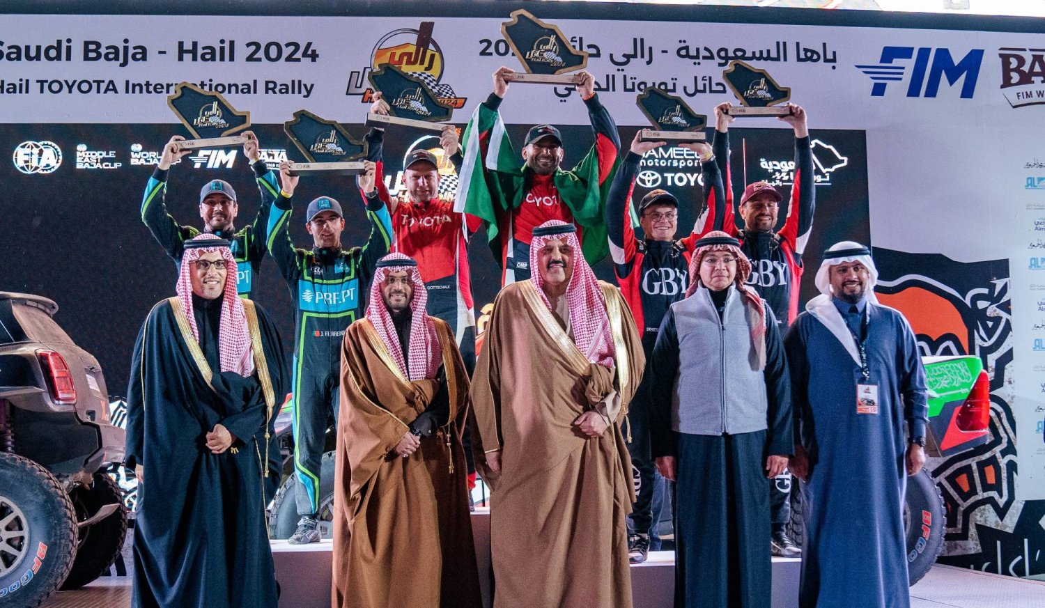 تمكن السائق السعودي يزيد الراجحي، برفقة ملاحه الألماني تيمو جوتشالك، من تحقيق لقب رالي حائل تويوتا الدولي 2024، للمرة السابعة في تاريخه، على متن تويوتا هايلوكس.
